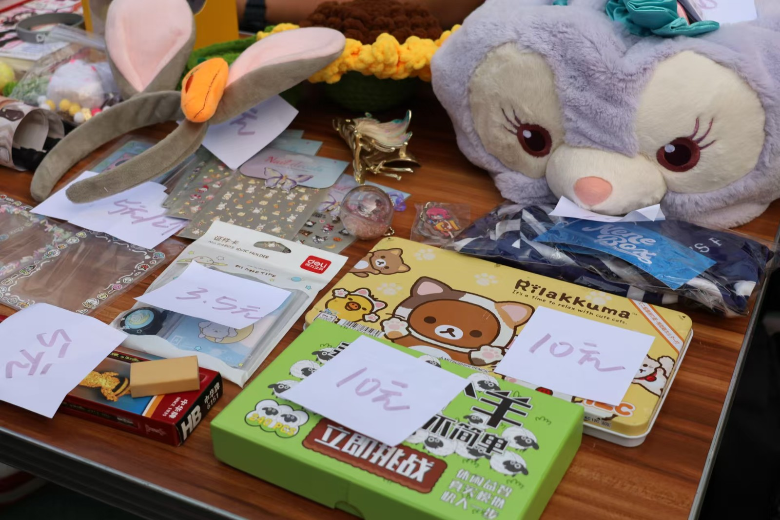 活动现场,班级摊位各具特色。学生们精心布置的摊位上有着琳琅满目的商品供人挑选。同学从家中带来了许多闲置的小物件:如动漫周边、手工艺品、二手书籍等。操场上同学们招揽顾客、买卖商品很是热闹。大家挑选自己喜欢的物品同时也为公益事业贡献一份力量。