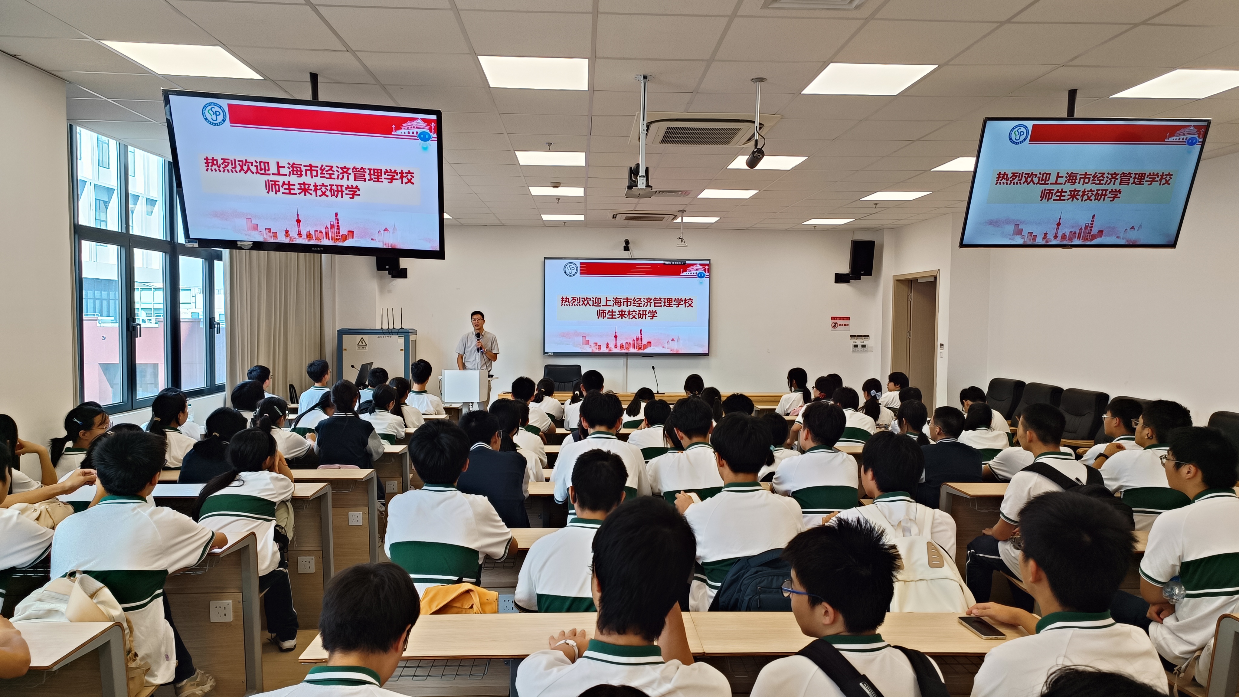 为深化中本、中高职贯通人才培养衔接,帮助学生提前感知高校专业内涵,近距离触摸行业技术前沿,9月26日下午,学校邵春花老师等,带领2025级网络工程(中本贯通)、网络技术(中高贯通)、计算机应用(中高贯通)班学生,赴上海第二工业大学(以下简称“二工大”)开展主题研学活动。二工大计算机与信息工程学院马闯、沈文枫、白双杰、刘琰、吴月萍等老师全程接待,为学子们打造了一场“专业认知+技术体验+精神浸润”的沉浸式研学之旅。