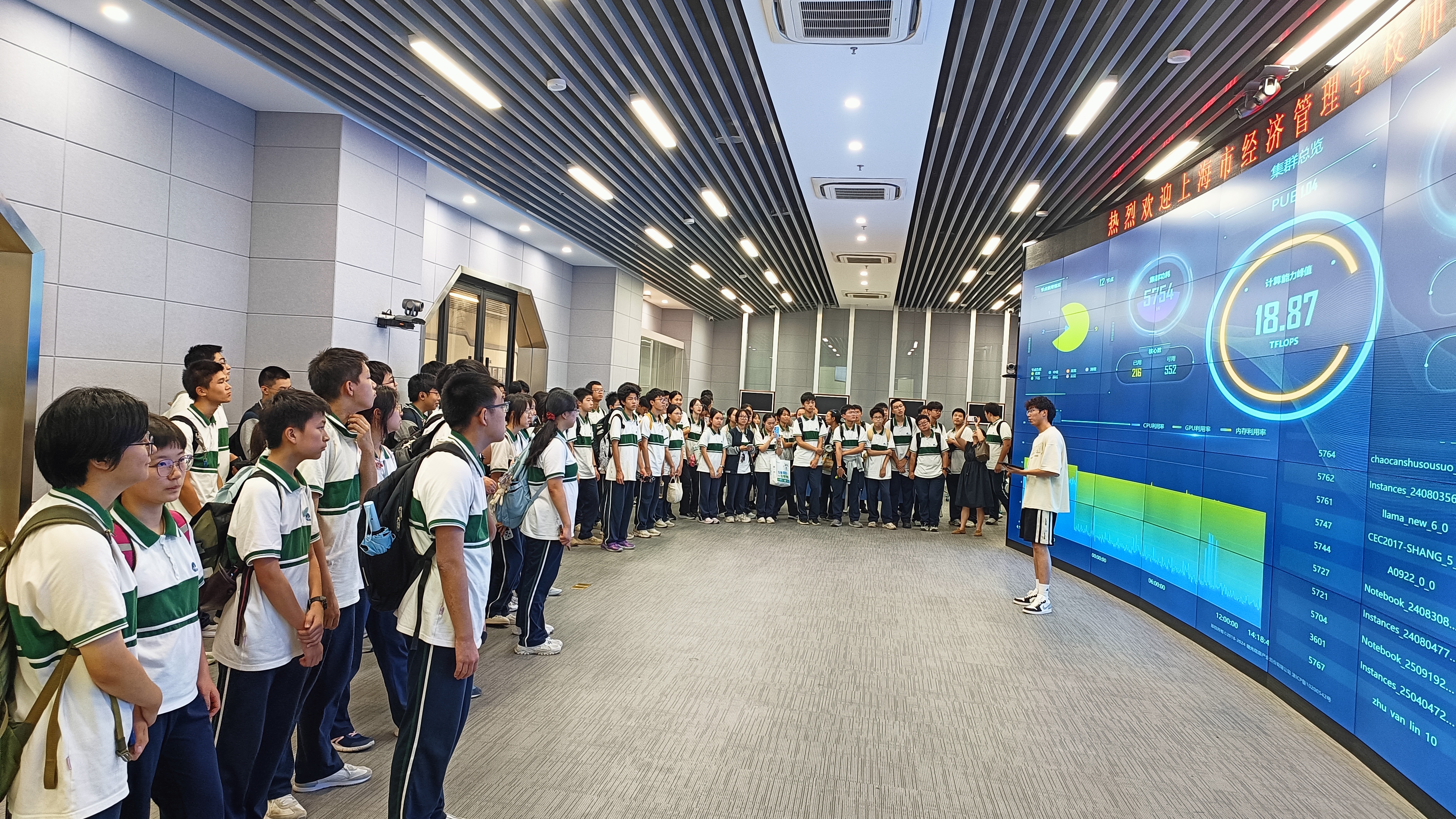 随后,研学队伍在白双杰、刘琰等老师带领下开启“实验室探秘”:路由交换与网络安全实验室可满足局域网组网、网络攻防实训;综合布线实验室还原企业场景,学生能实操“端接测试到系统集成”全流程;“厚技”智算协同创新平台展示云、大数据与AI融合应用,沈文枫老师演示“智能数据处理”,让学子直观感受技术赋能产业。