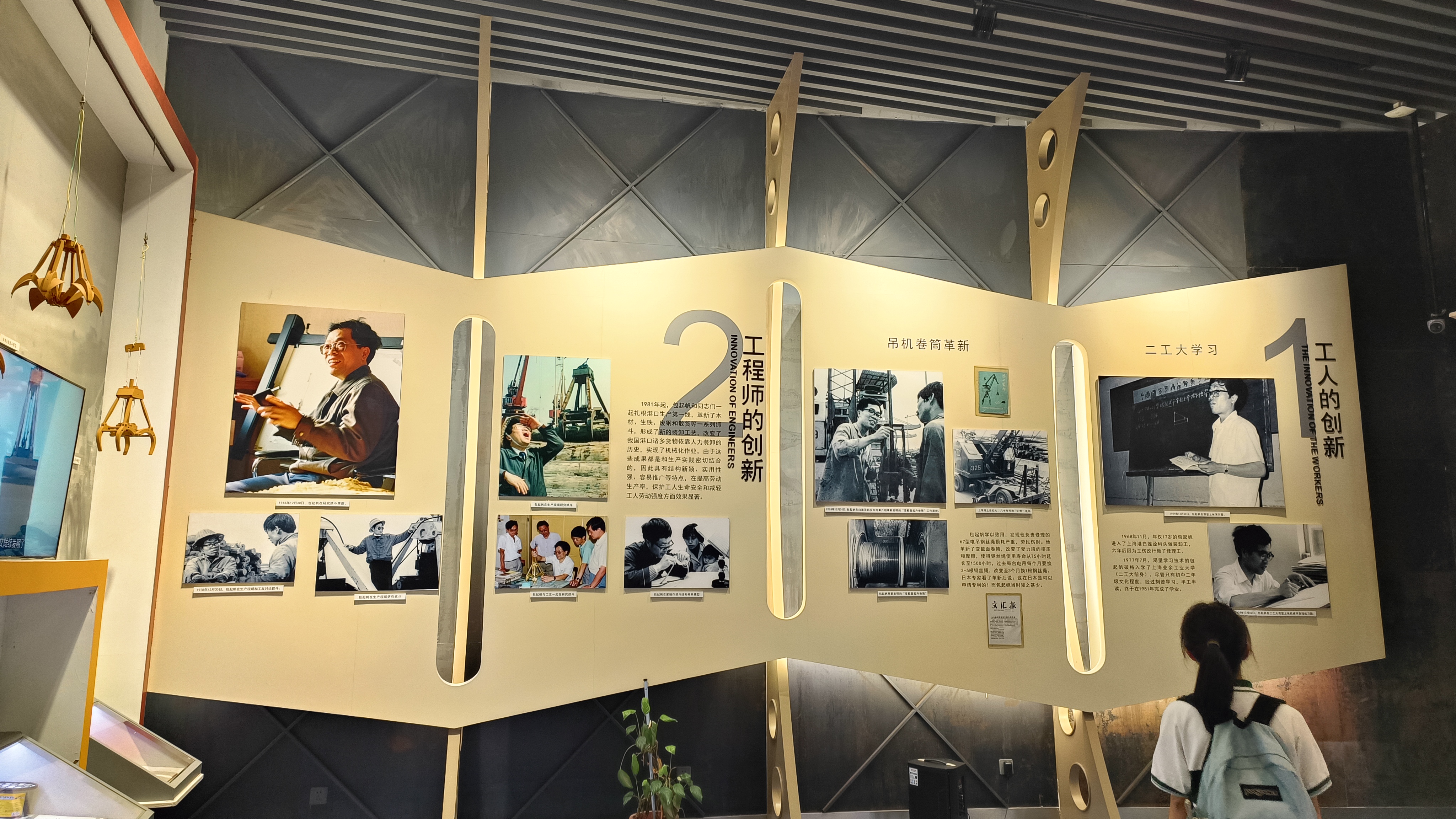 如果说实验室参观是“技术赋能”,那么包起帆创新之路展示馆与校史馆的参观,则是一场“精神补钙”。刘琰老师讲解二工大“劳模摇篮”底蕴:校友包起帆从普通码头装卸工起步,刻苦学习、创新28年,研发“抓斗”技术获日内瓦国际发明金奖,成“平凡岗位走向卓越”典范。