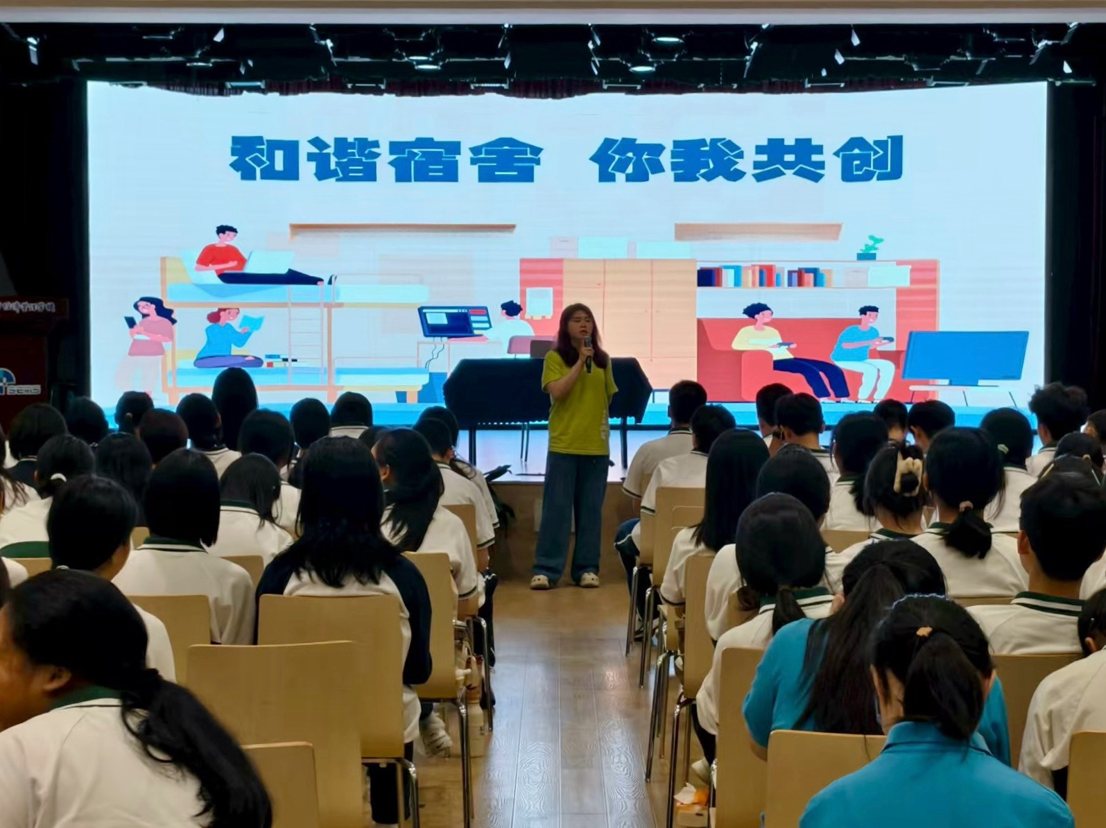 为切实强化学生宿舍安全管理,全面提升住宿生的安全防范意识与自我保护能力,积极营造安全、文明、和谐、温馨的住宿环境,近日,由校团委牵头组织,后勤保卫处、医务室共同参与的新学期首次住宿生安全教育大会在学校大礼堂顺利举行,消防疏散演练同步开展。校团委书记陈炜琦老师、后勤保卫处戴明慧老师、医务室刘淑红老师及全体住宿生共同参加本次活动。