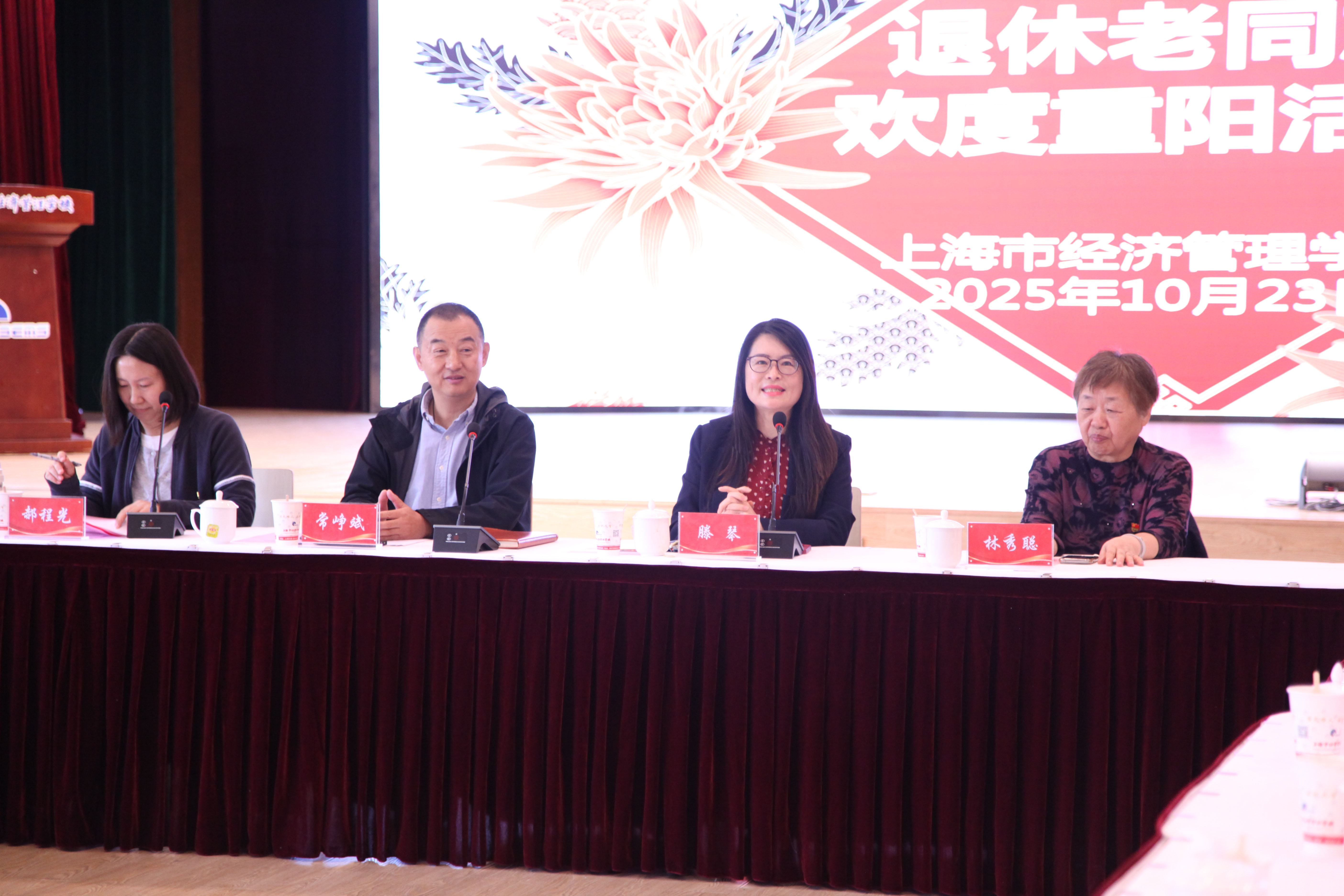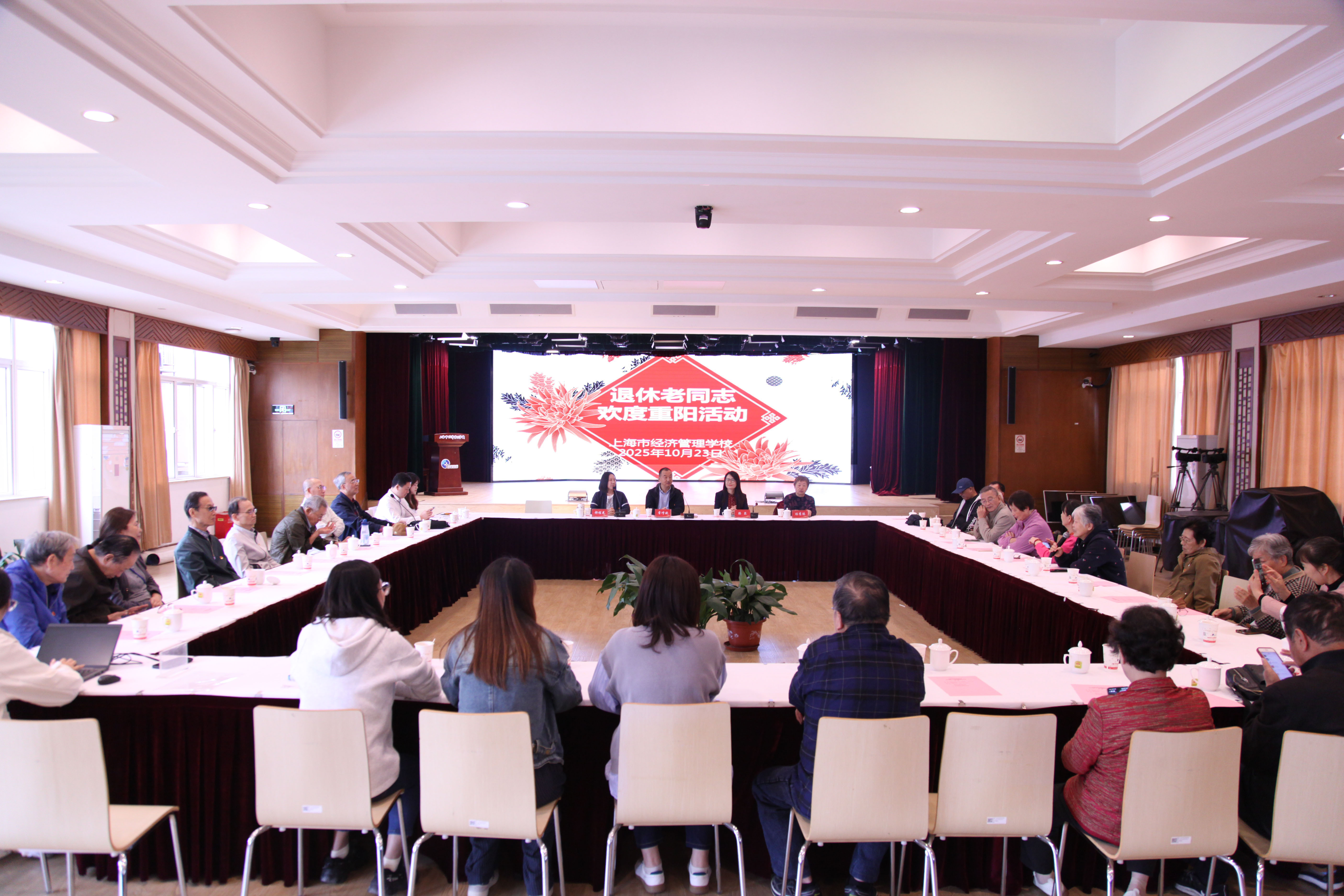 金秋十月,丹桂飘香。在重阳节即将到来之际,学校于10月23日在大礼堂组织开展庆祝重阳节活动。学校党委书记常峥斌,党委副书记、校长滕琴,党委副书记、纪委书记郝程光,党委办公室、校长办公室主任,各党支部书记、校团委书记、工会专员、各系团总支书记以及退休党支部党员、退休老领导、老教师代表齐聚一堂,共话情谊、共庆佳节、共谋发展。