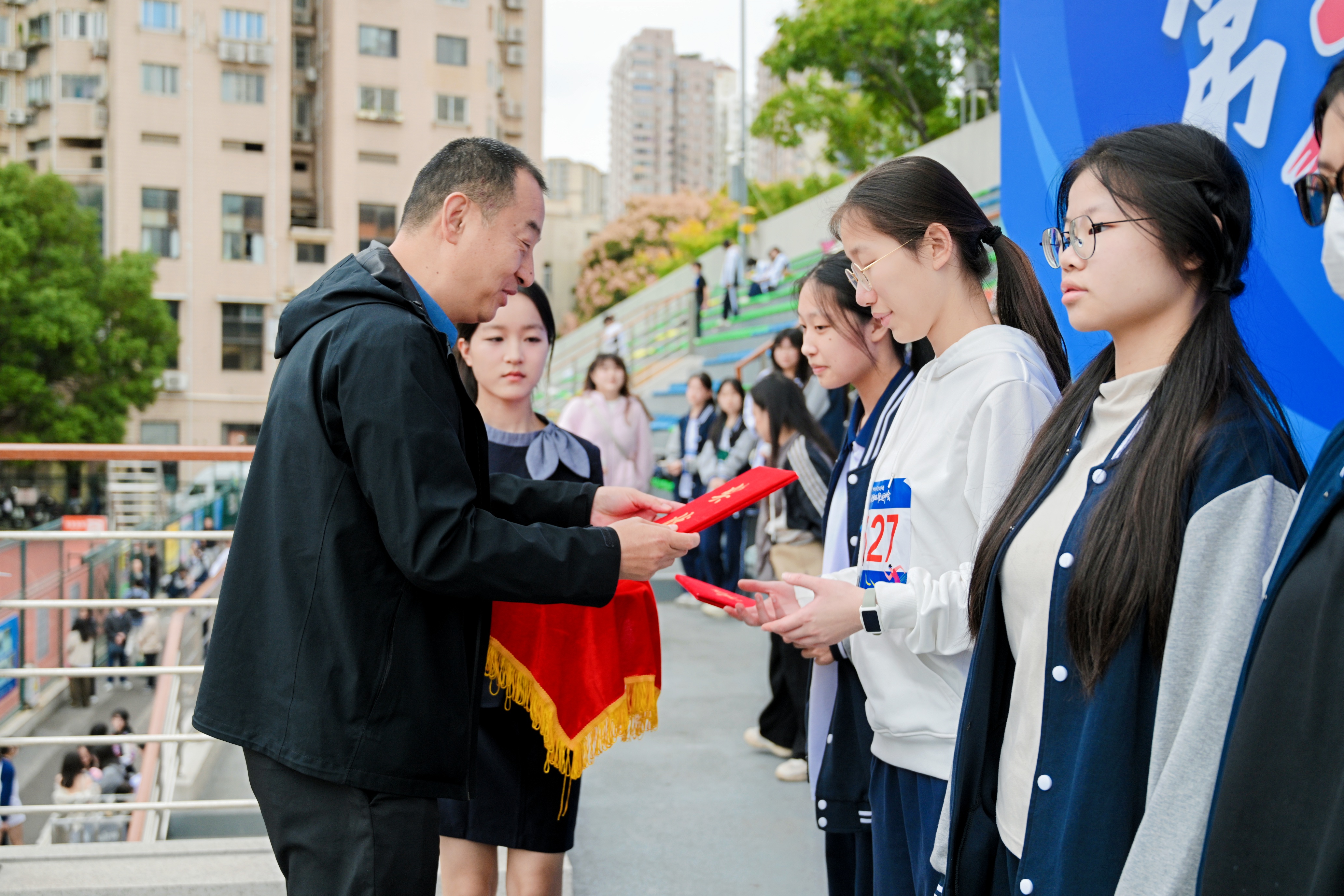 闭幕式上,校领导为获奖班级代表进行了颁奖。党委副书记、校长滕琴致闭幕词并宣布运动会胜利闭幕。她回顾了开幕式方阵的精彩演绎、赛场上运动员的拼搏姿态及师生团结友爱的珍贵画面。结合学校四十周年校庆,滕校长期望师生将赛场速度转化为求知效率、挑战勇气转化为练技执着、团队协作融入生活,以校庆为契机共促学校发展。