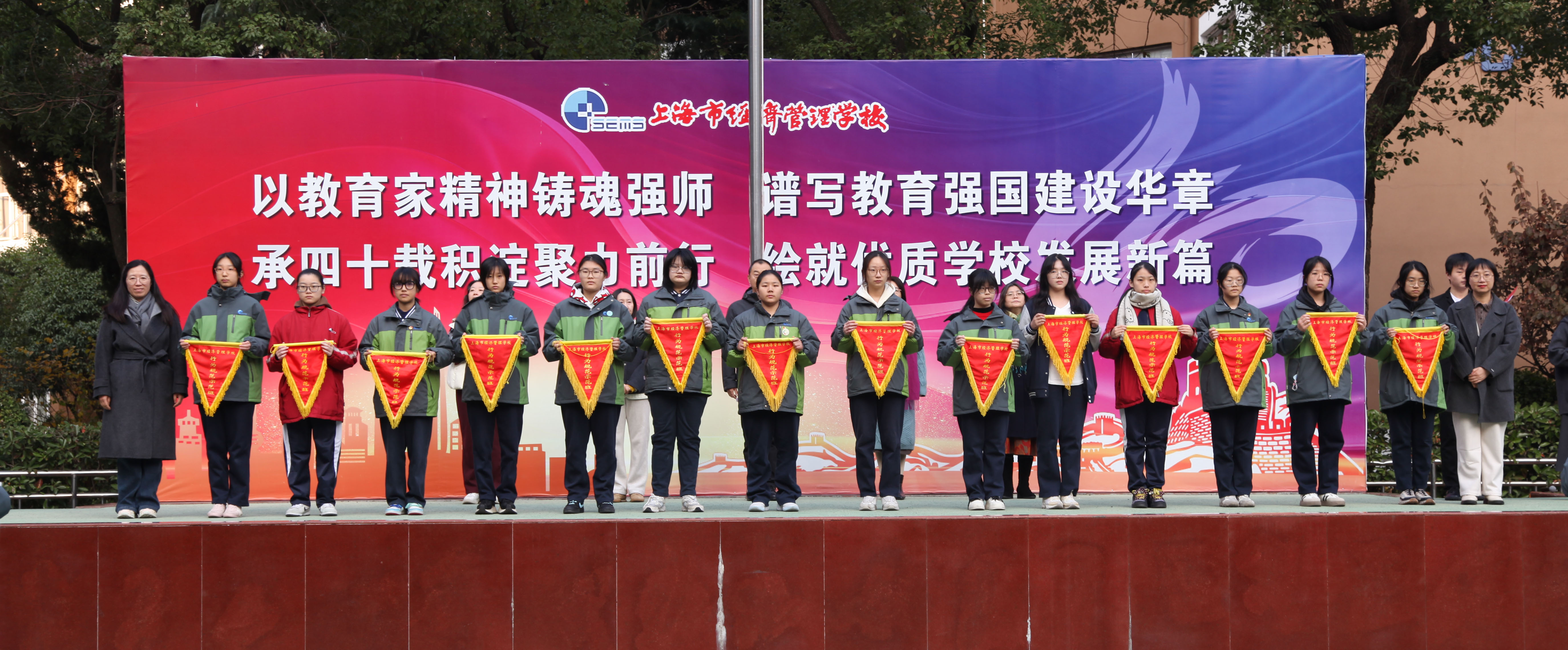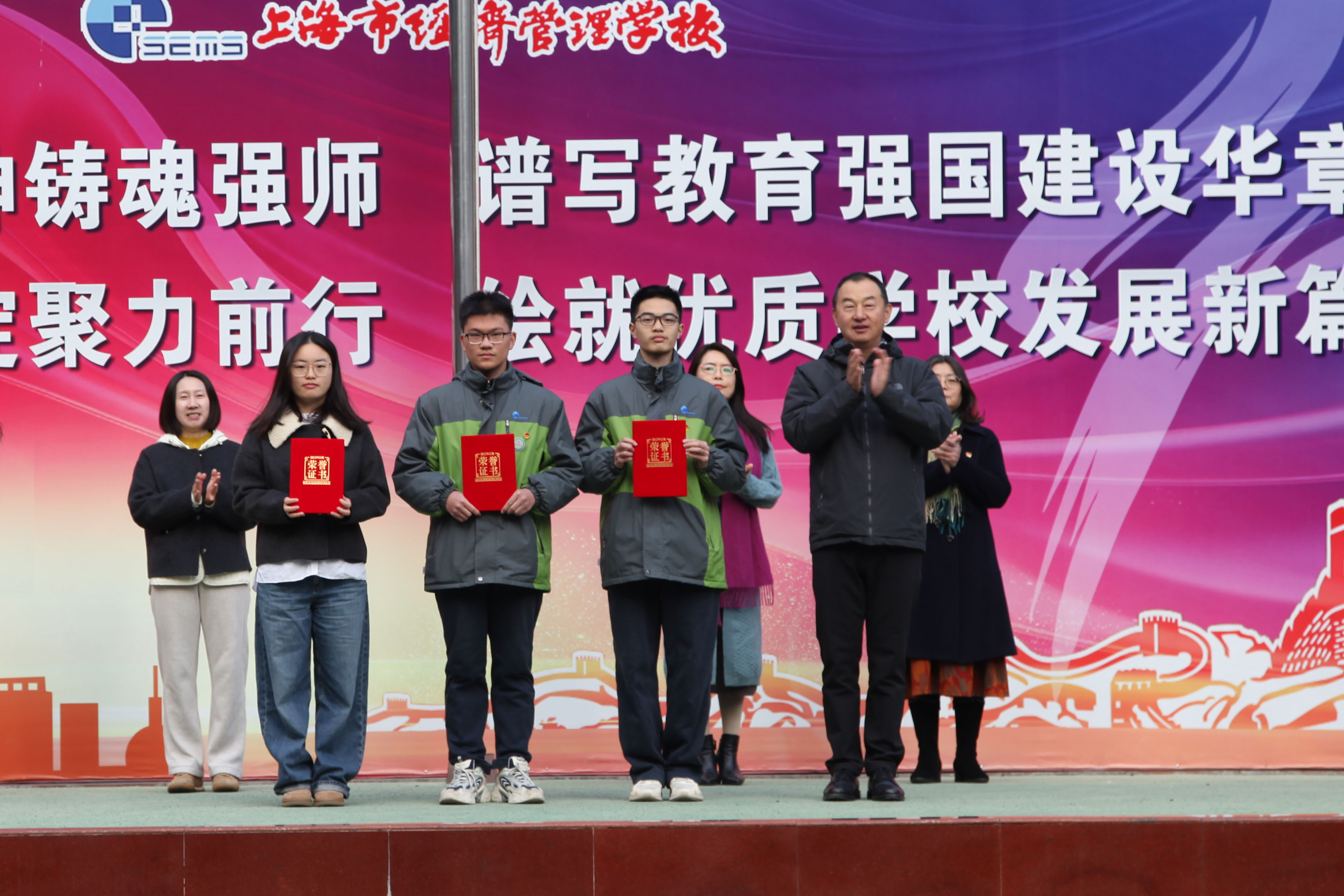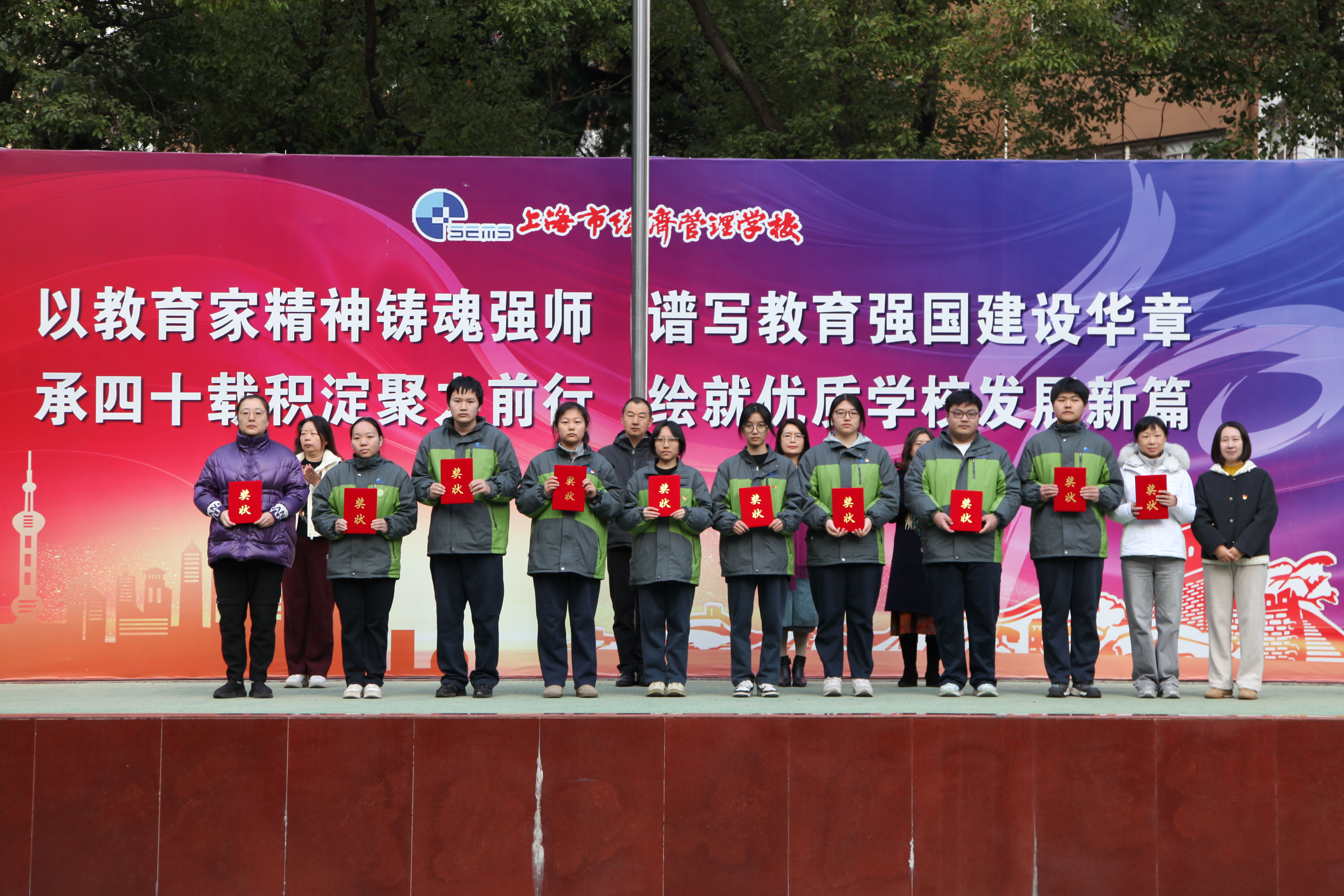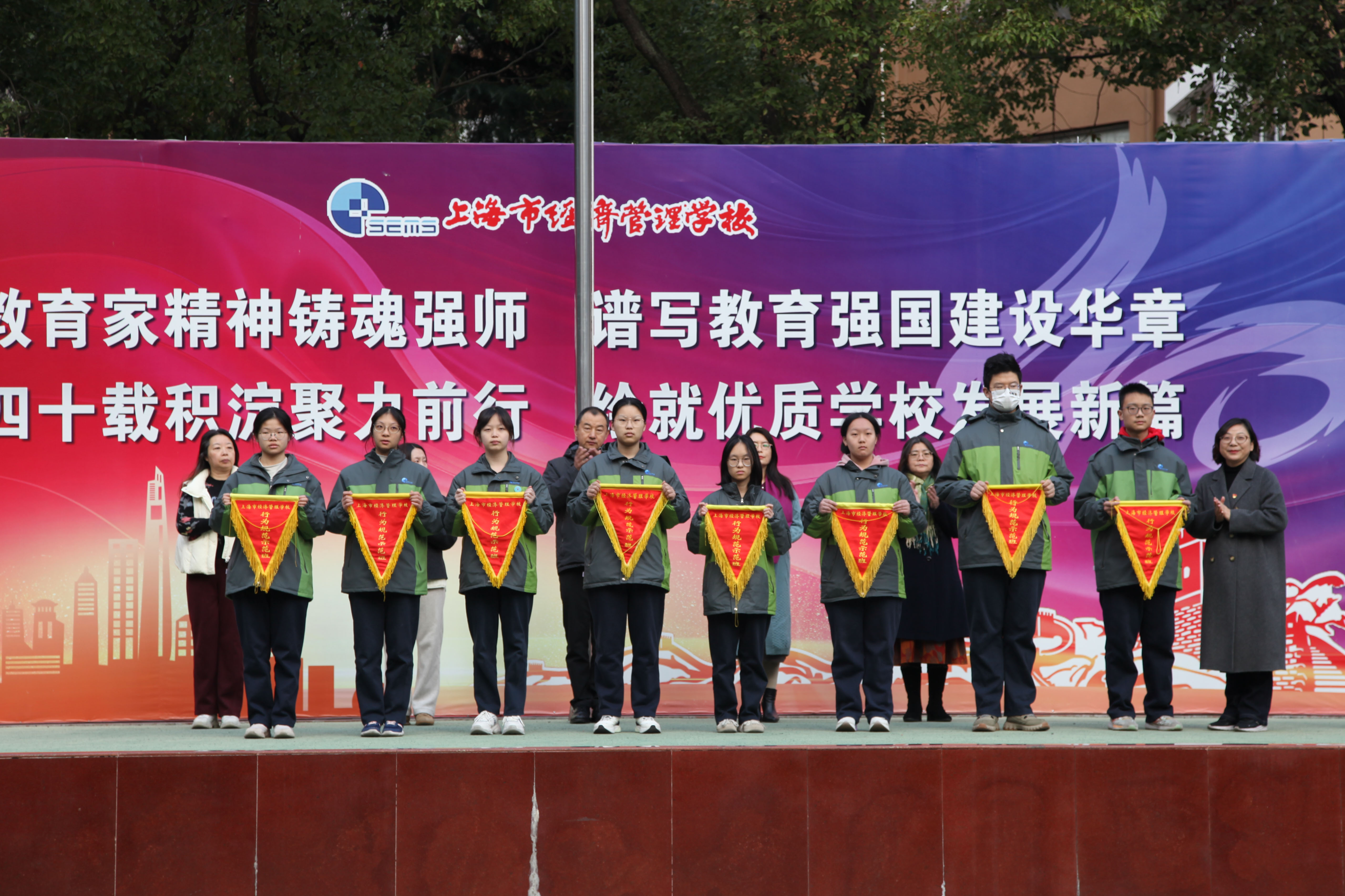 12月5日,学校在操场举行了以“共绘同心圆·聚力新征程”为主题的12月份升旗仪式。仪式上,学校分别对2025学年第一学期11月份行为规范示范班、2025年上海市职业学校“烽火记忆,红色传承”作品征集活动“巧匠作品”“工匠作品”奖、2025年第四届“金育杯”金融智能投顾大赛全国总决赛获奖、2025年一带一路暨金砖国家技能发展与技术创新大赛之第三届人工智能工程化应用赛项获奖以及2025年第十三届上海市“中华杯”教师职业技能竞赛获奖的教师、学生及团队进行了表彰。