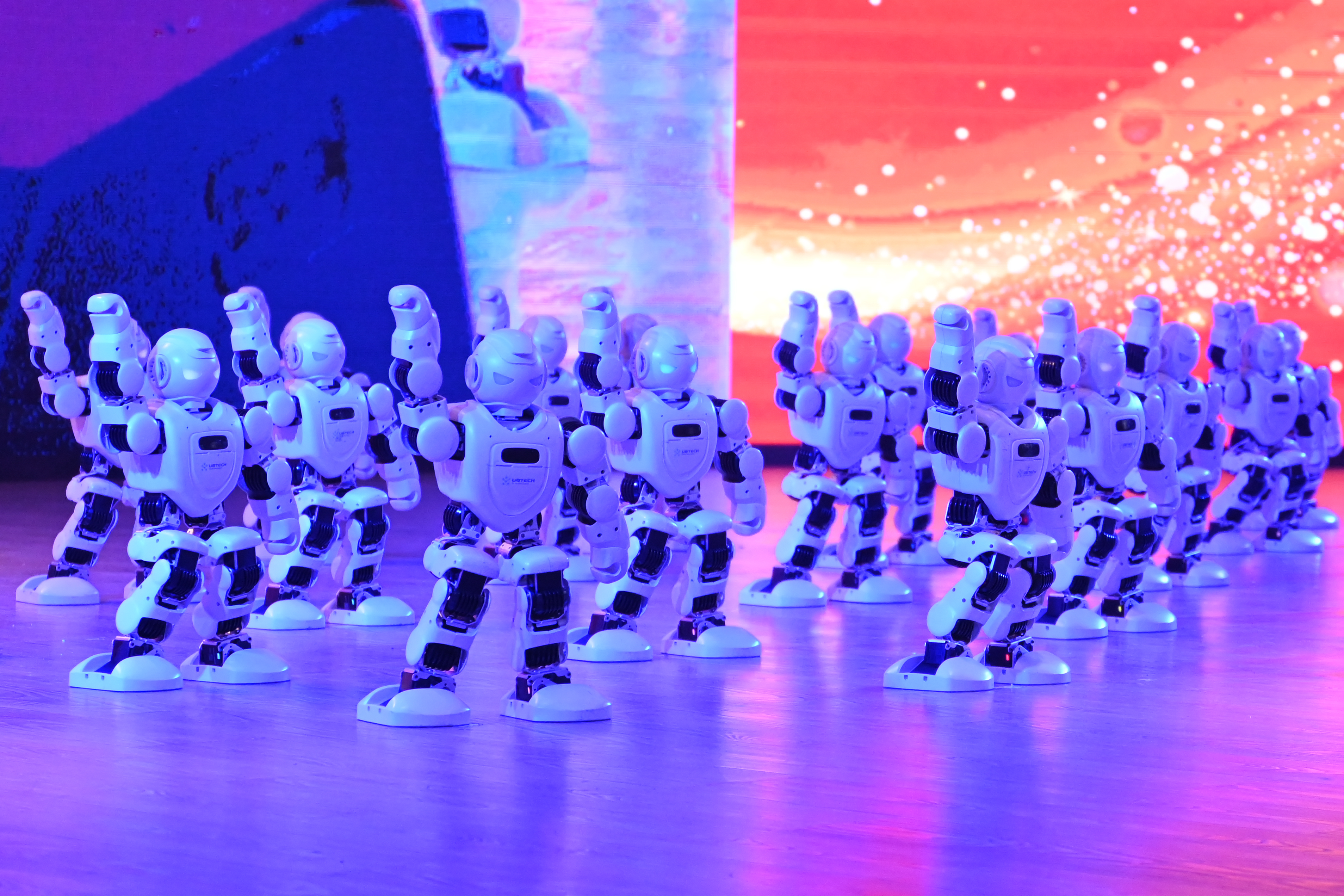 科技创新是学校发展的重要引擎。会上,“经管小智”机器人惊艳亮相,40台机器人以充满科技感与青春活力的舞蹈秀,呈现了学校“专业课程+第二课堂”的分层培养成效,彰显了职业教育“经世致用”的育人特色。