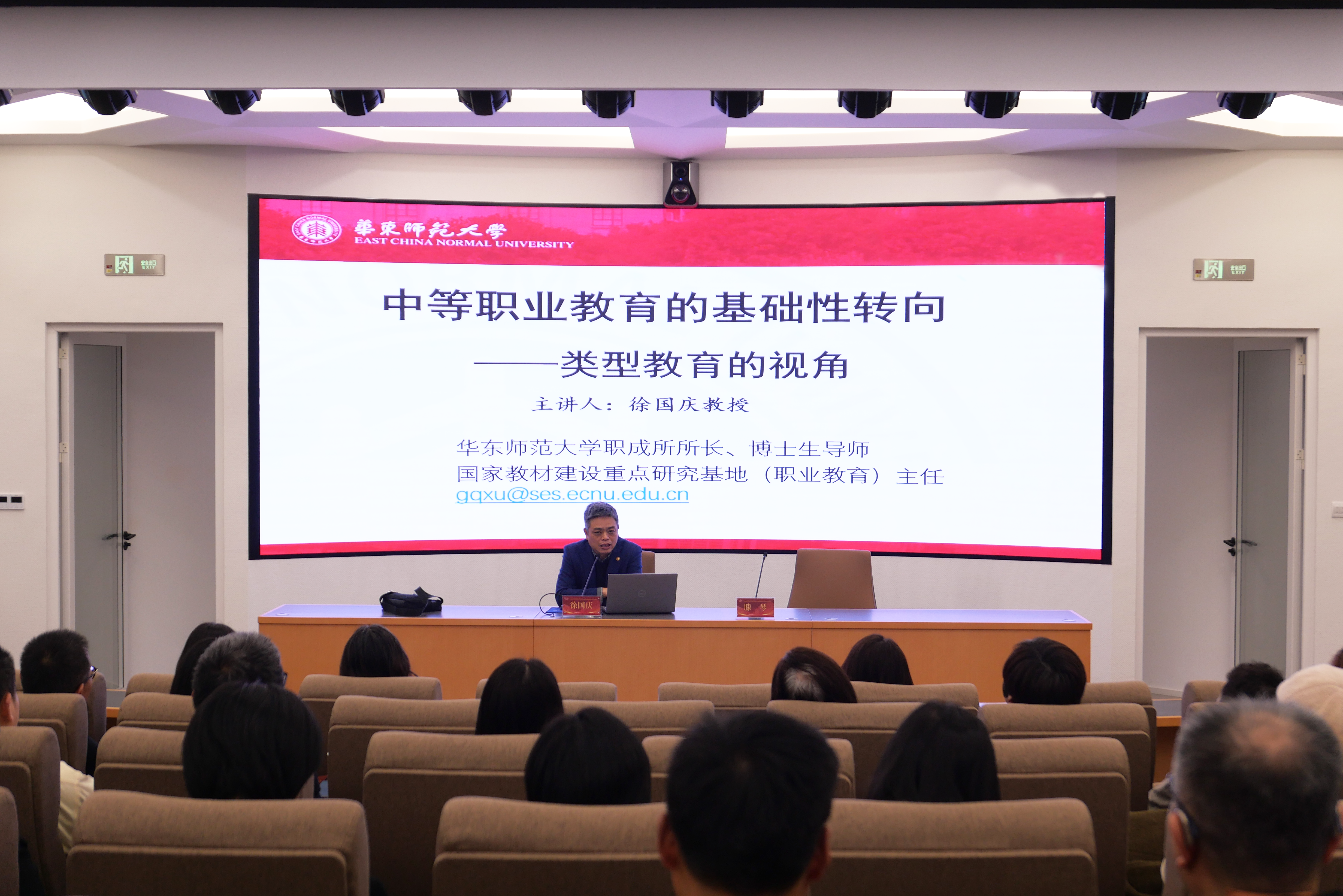 华东师范大学职业教育与成人教育研究所所长、国家职业教育教材建设和管理政策研究基地主任徐国庆教授,以“中等职业教育的基础性转向——类型教育的视角”为题发表演讲。徐教授从构建现代职业教育体系的战略高度出发,系统阐述了中等职业教育作为类型教育基石的重要地位,为教育工作者厘清了新时期中职教育的改革方向与发展逻辑。