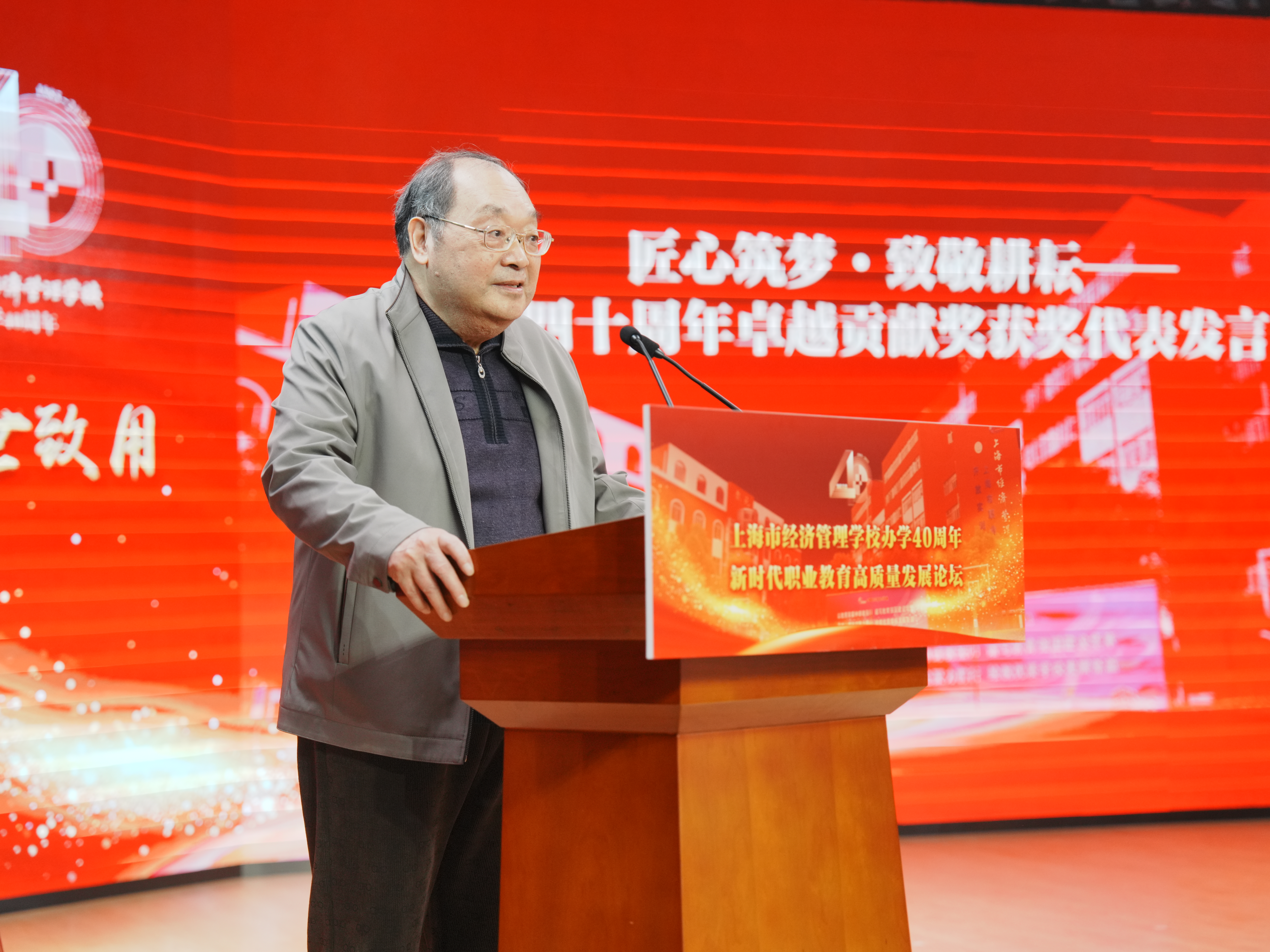 在学校40年的光辉历程中,历任老领导、退休老教师是学校历史的创造者、学校发展的见证者。大会特别致敬老领导、老教师,首任校长潘中法代表发言,回顾建校艰辛与荣光,并寄语新一代经管人传承传统、续写辉煌。