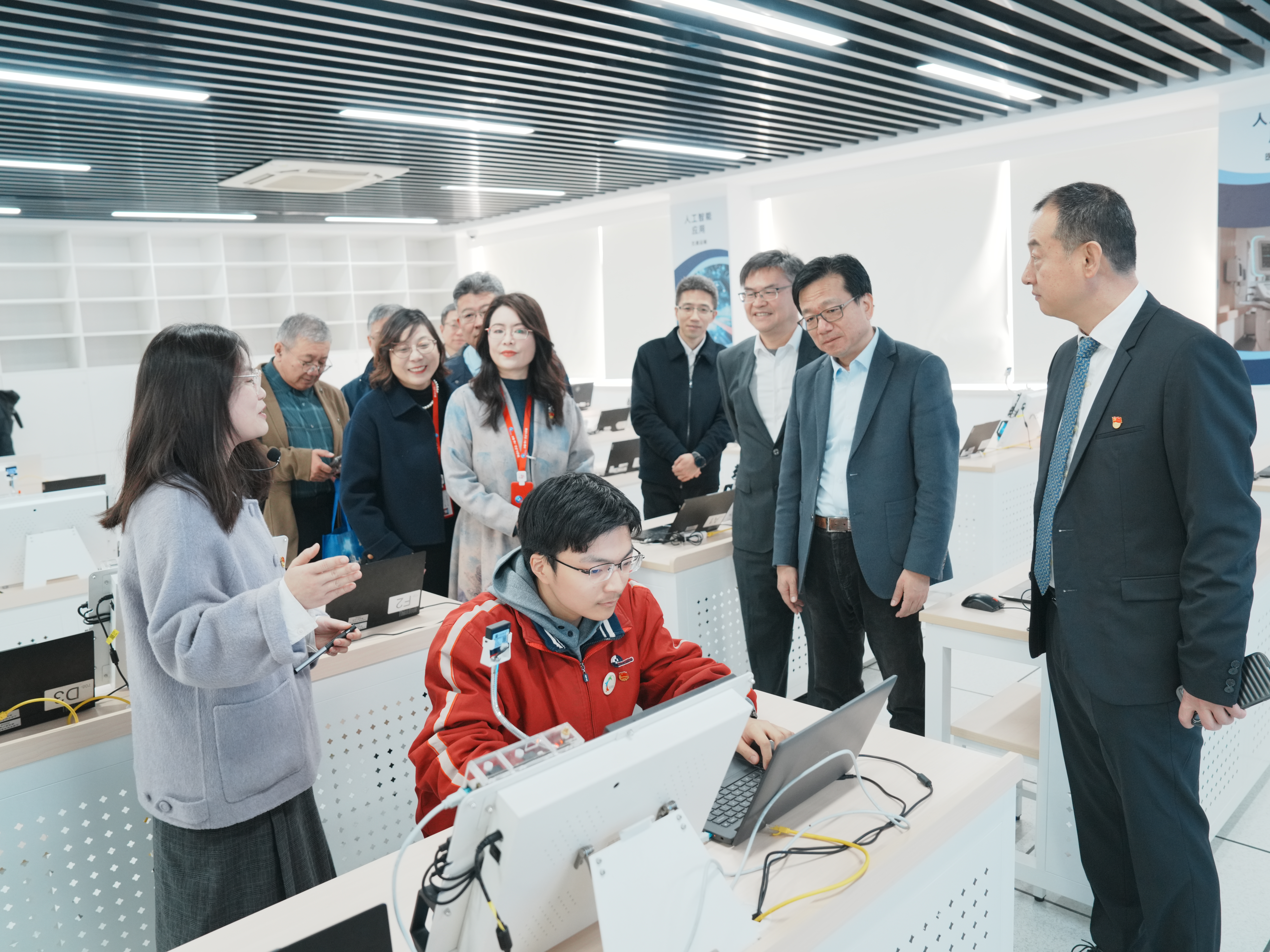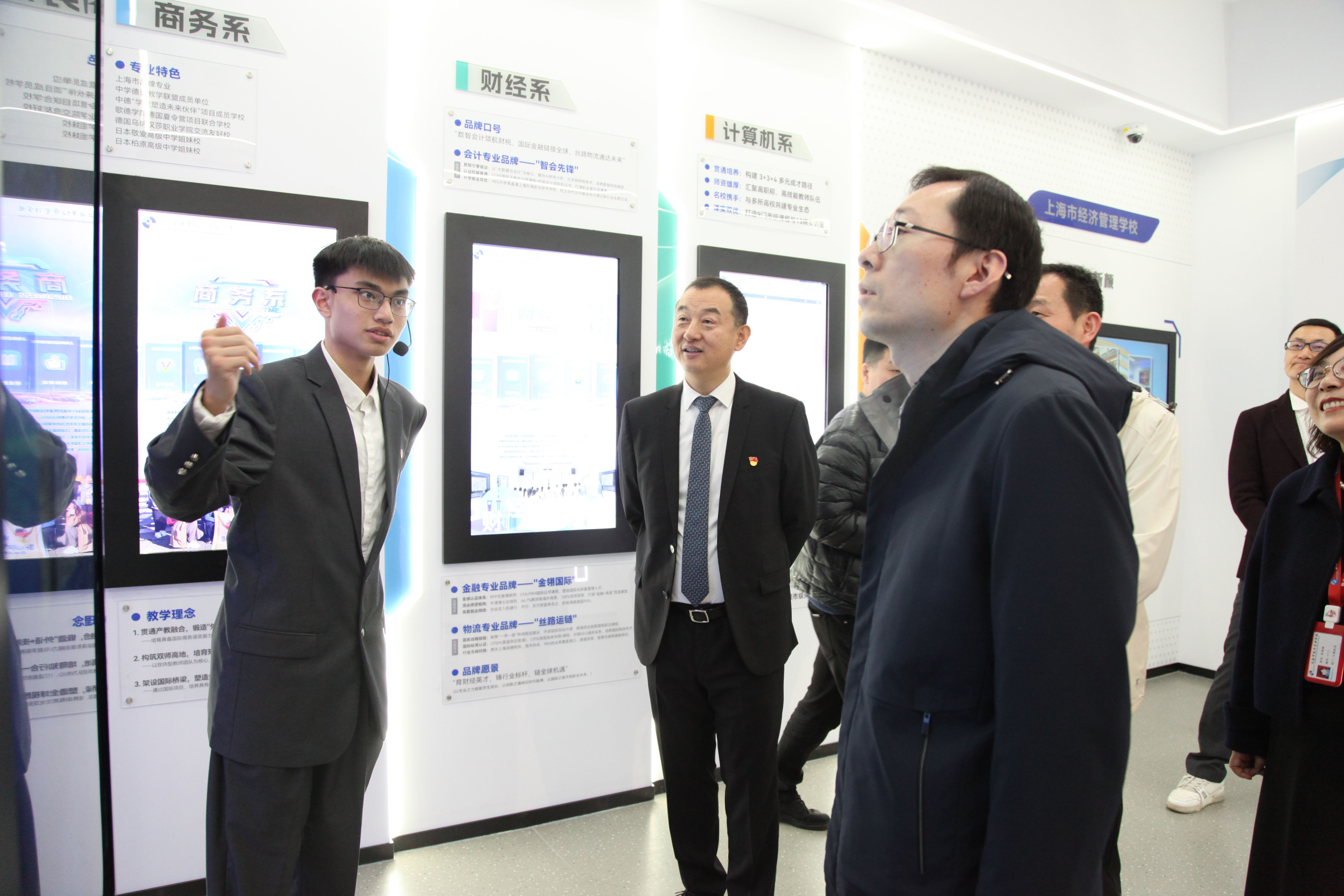 领导与嘉宾还参观了学校人工智能高水平开放实训中心、通识教育中心及经管印象馆—思政教育中心,实地察看各场馆功能布局与建设成果,深入了解学校在智能技术育人、通识素养培育、思政教育创新等领域的实践探索。