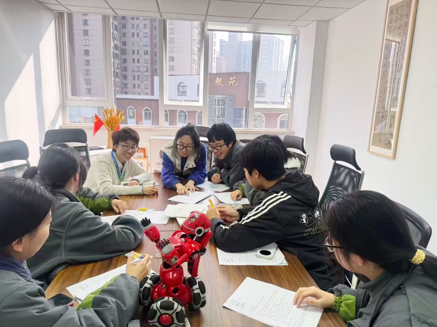 比赛当天,队员们带着精心制作的道具,默念着烂熟于心的剧本,自信地踏入赛场。数月磨一剑,此刻见真章——台上,他们并肩作战,配合天衣无缝;台下,他们彼此鼓励,目光坚定如初。当帷幕缓缓落下,掌声响起的那一刻,所有的付出都化作了笑容。这份荣耀,属于小组里的每一位师生,属于这个全力以赴的集体。比赛终会落幕,但这段追光的日子,将永远闪亮。
