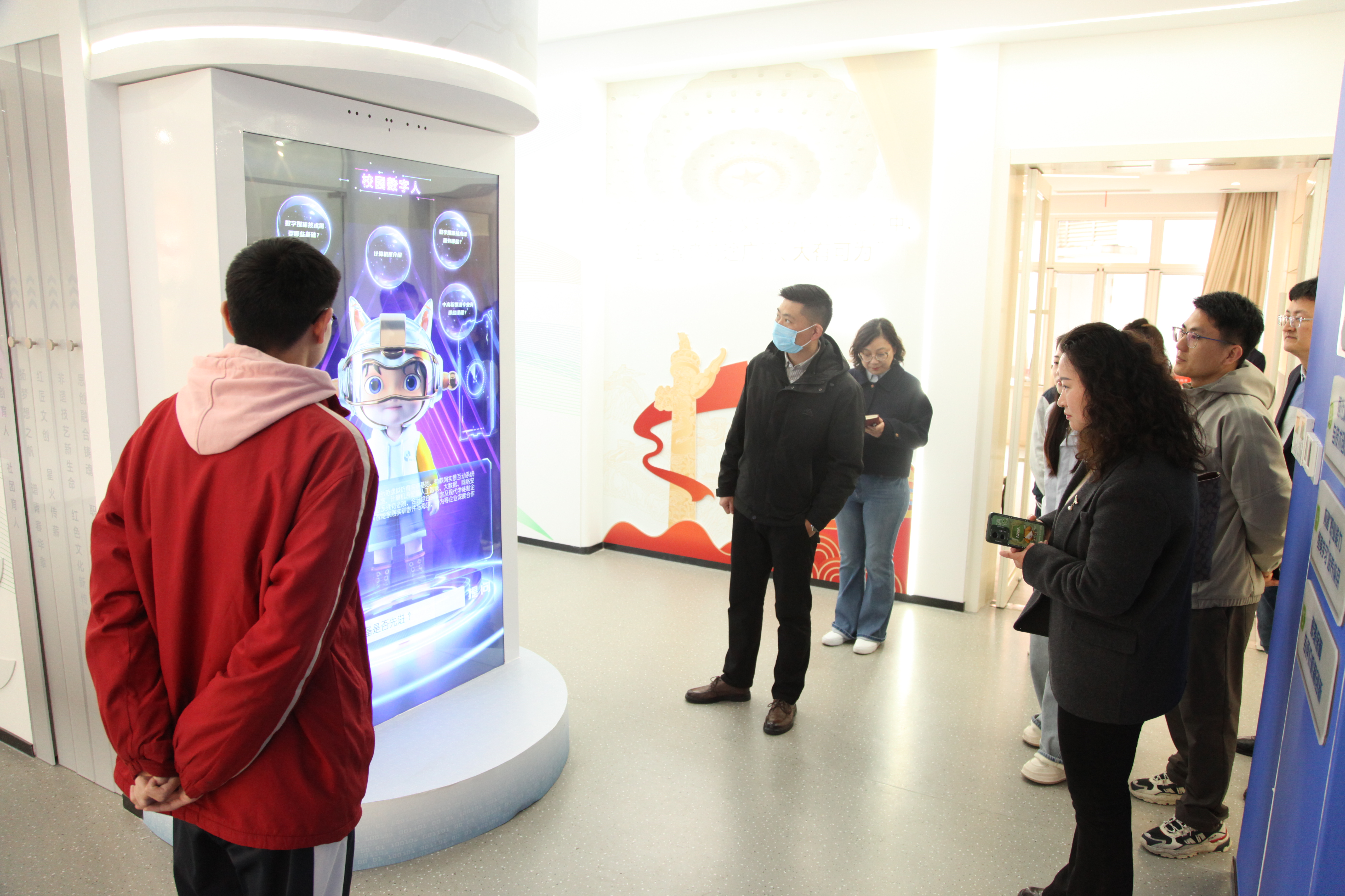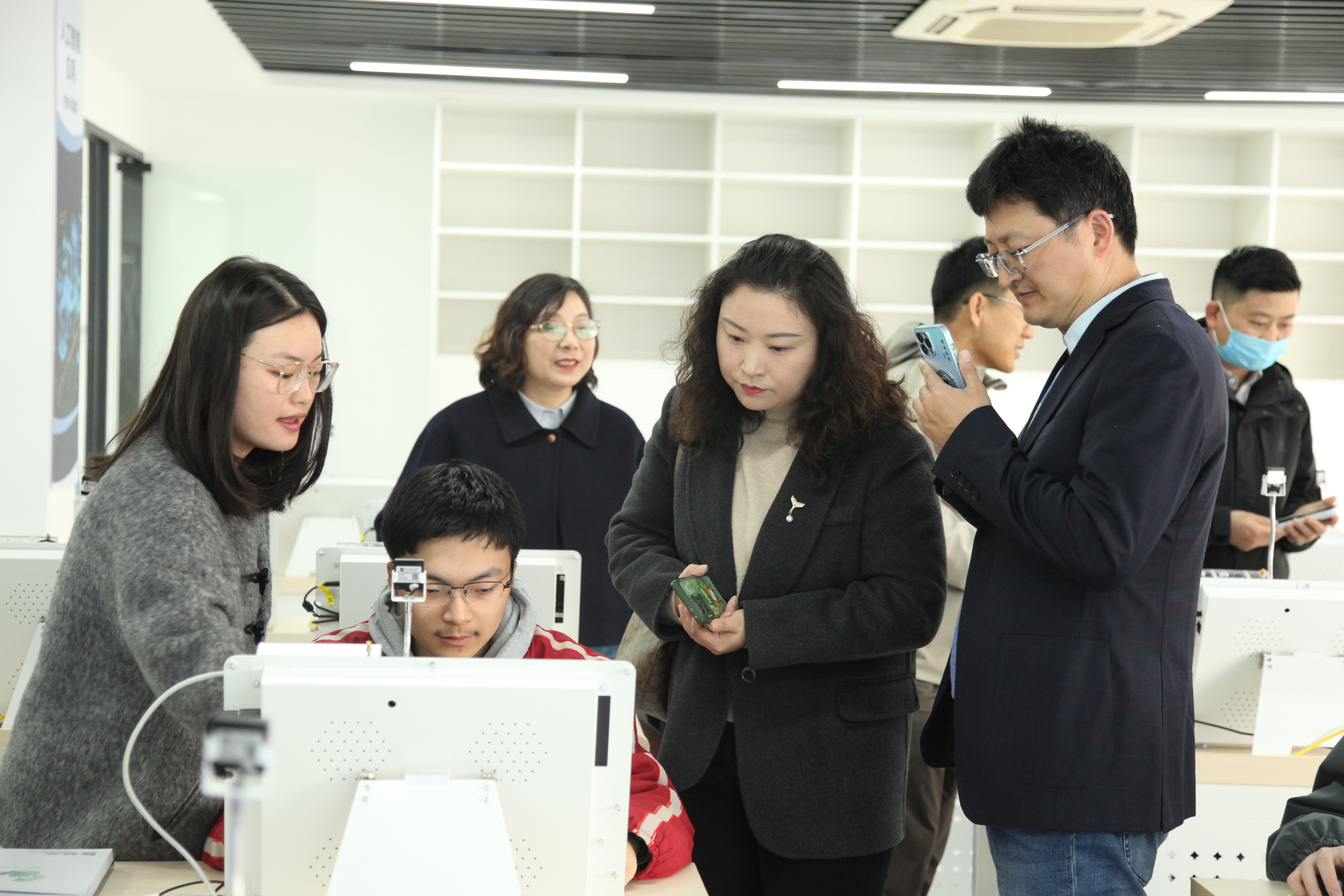 调研组一行首先实地参观了我校人工智能高水平开放实训中心,详细了解我校在专业建设与产业需求对接、高水平技能人才培养等方面的具体举措与成效。随后,调研组走访了通识教育中心,深入调研我校在课程体系构建、特色育人模式等方面的创新实践。最后,调研组来到经管印象馆——思政教育中心,通过丰富的展陈与讲解,直观感受了我校的办学特色与浓厚的育人氛围。
