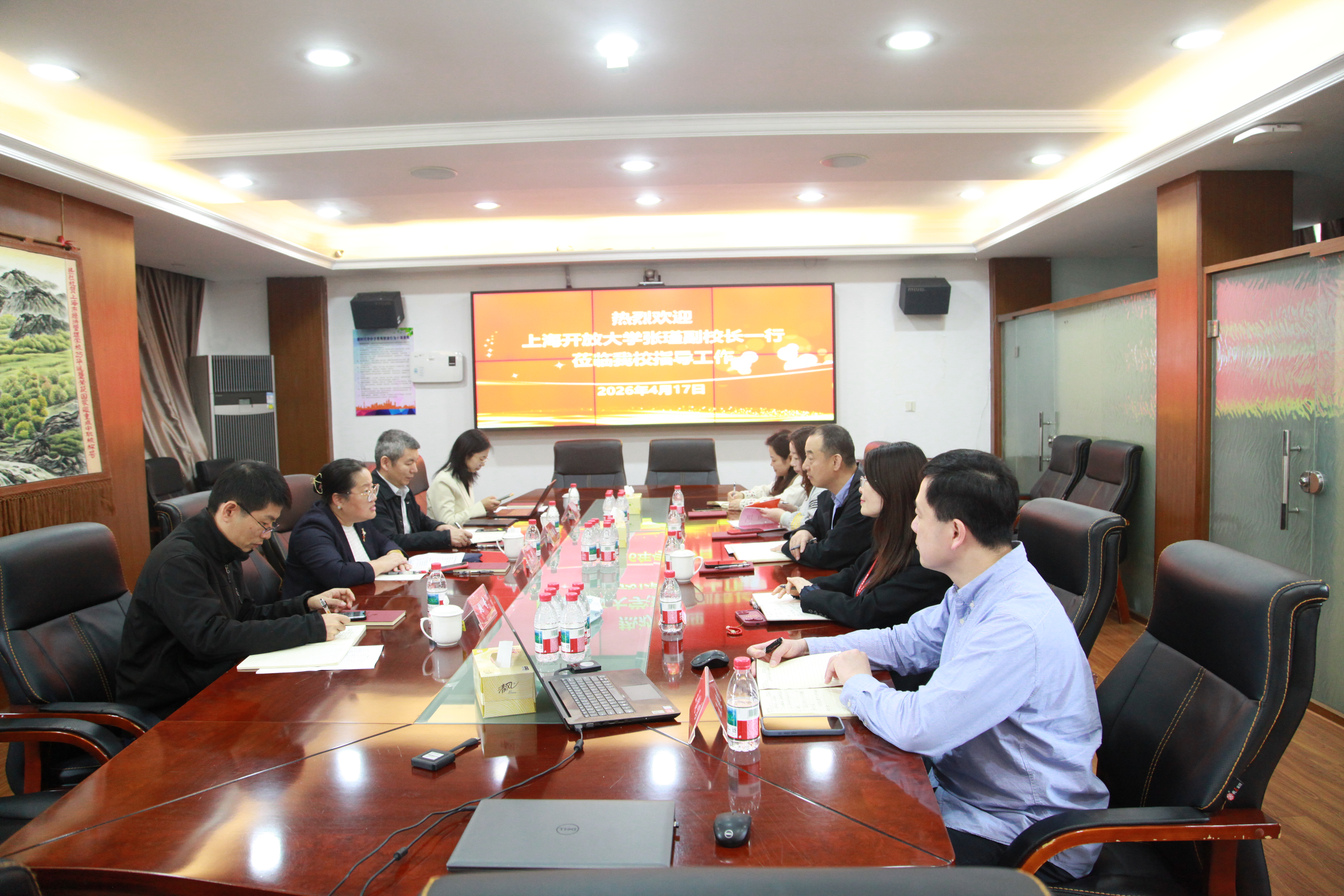 4月17日上午,上海开放大学副校长张瑾率学历部、非学历部、系统办相关负责人一行到校调研。校党委书记常峥斌,党委副书记、校长滕琴,党委委员、副校长郑燕琦及相关部门负责人陪同调研并参加座谈。