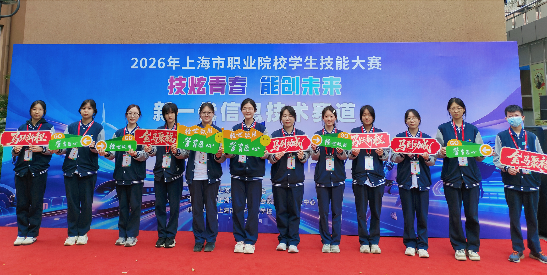 比赛当日,各参赛选手精神饱满、沉着应战,凭借扎实的专业功底、严谨的操作规范和高效的问题解决能力,在各自项目中全力以赴、精益求精,充分展现了上海职教学子精益求精的工匠精神和昂扬向上的青春风貌。赵晓伟副主任和潘波科长一行深入赛场观摩比赛情况,了解赛事组织工作,并对学校精细化的承办工作给予充分肯定。赛场内外,赛务工作组周密协调、有序推进,全力保障比赛各环节顺畅运转;学生志愿者们热情服务、耐心引导,以实际行动践行奉献精神,赢得参赛师生一致好评,成为赛场上一道亮丽的风景线。