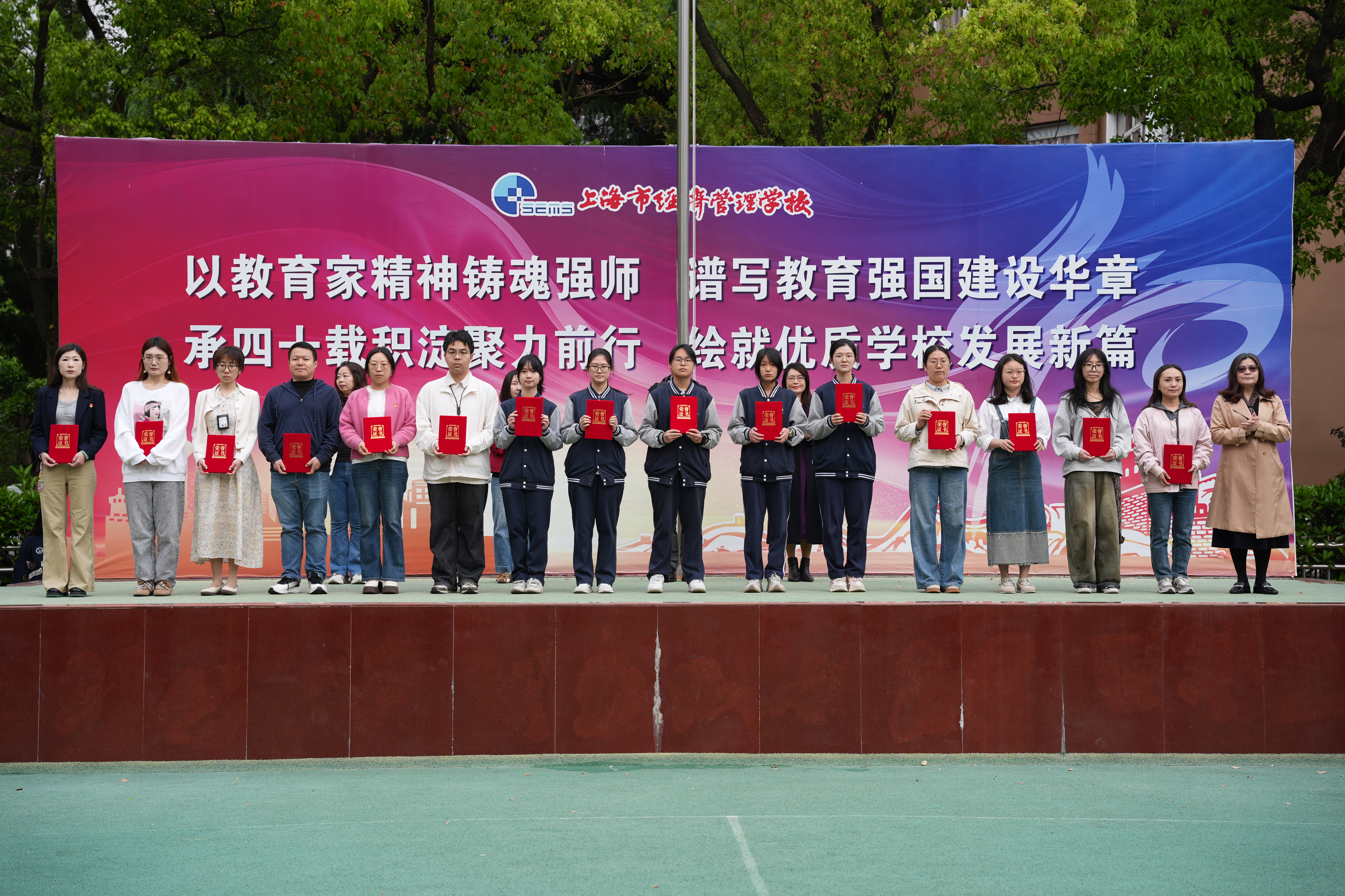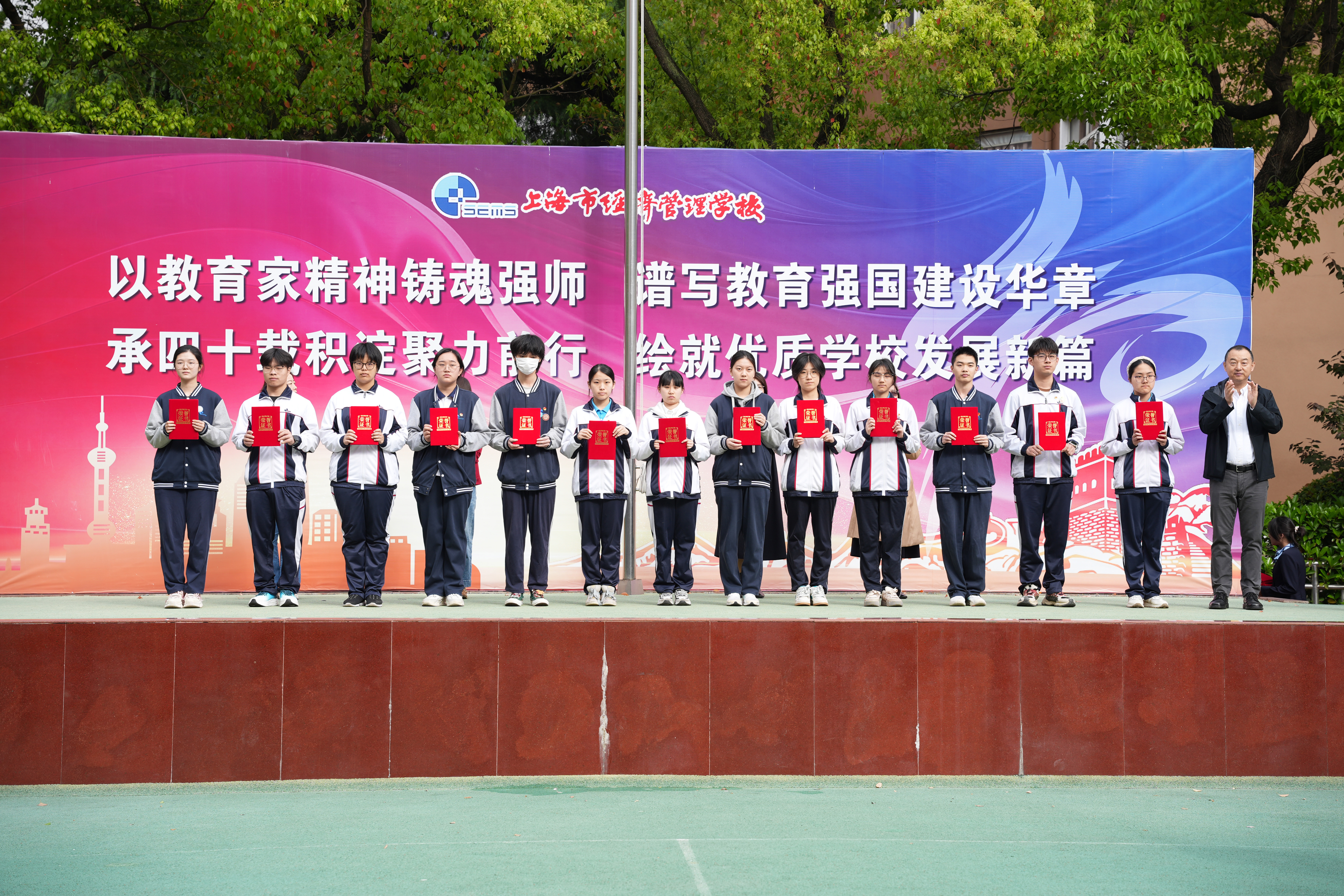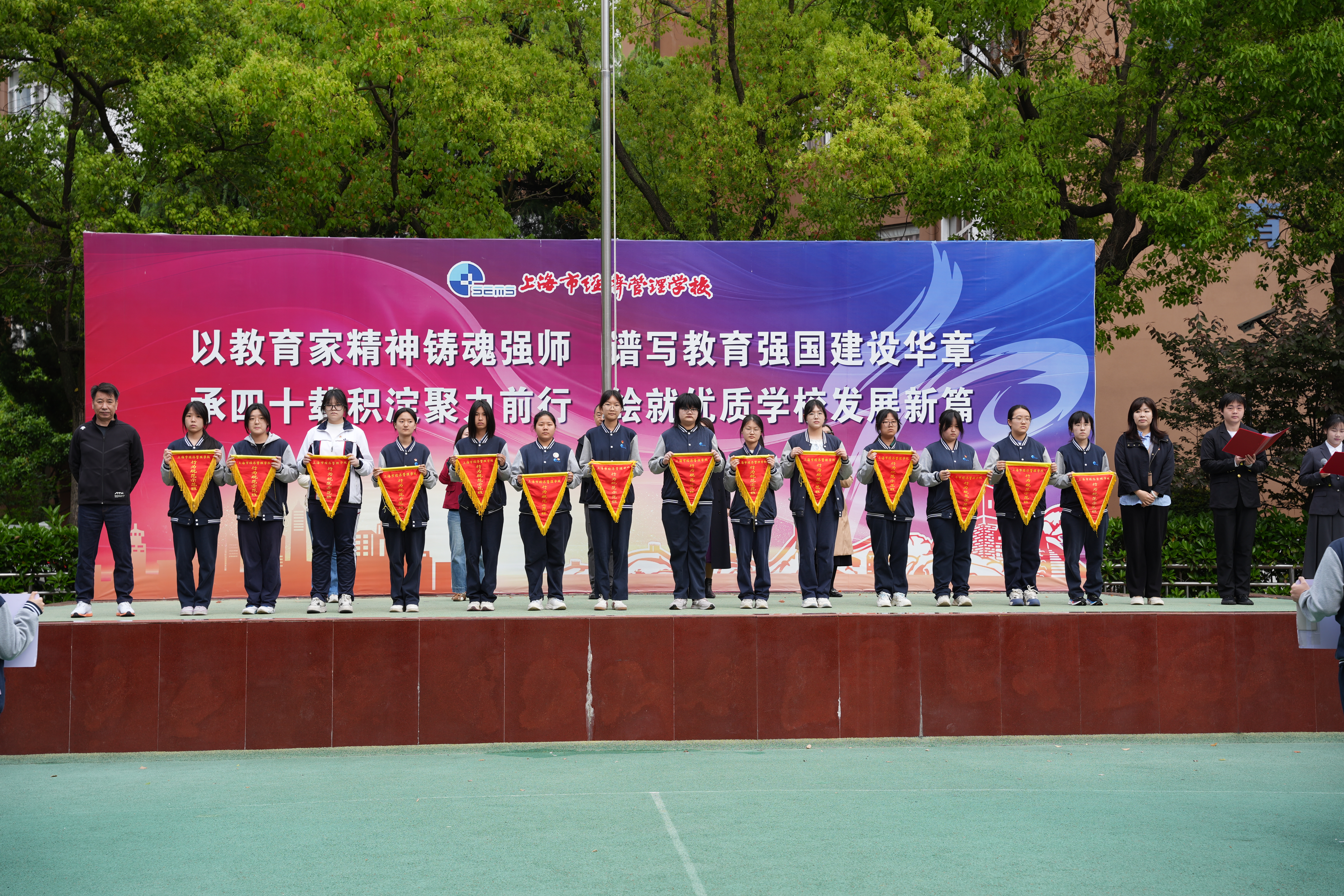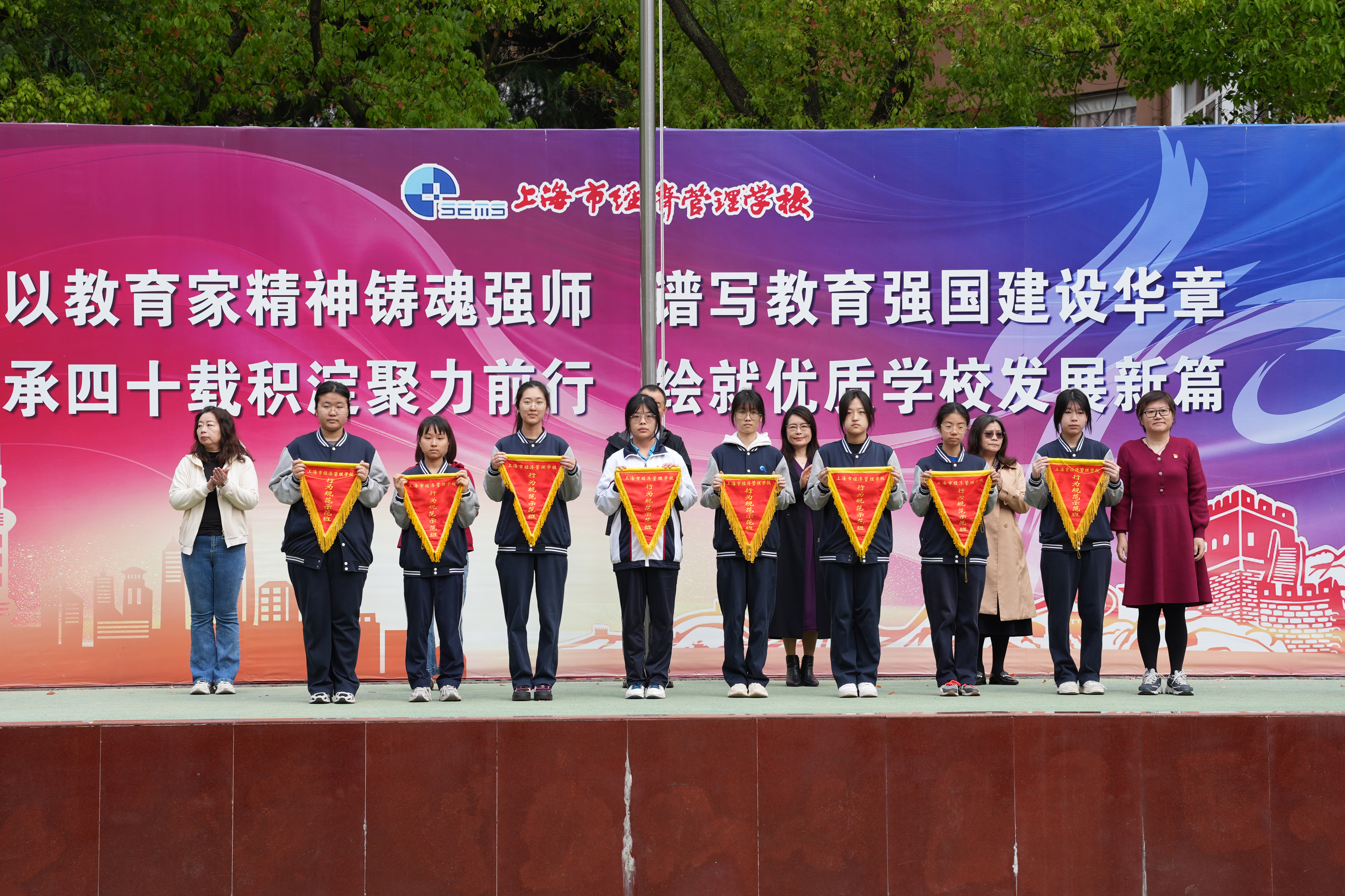 本次升旗仪式主题鲜明、流程紧凑,充分展现了上海市经济管理学校师生昂扬向上的精神风貌和严谨有序的校风学风。学校将继续以立德树人为根本,持续深化行为规范教育、科技创新实践与课程思政建设,为培养德技并修的高素质技术技能人才不懈努力。(摄影:24003班陈天麒、25007班濮亦凡、曹诗佳、24005班孙俊豪)