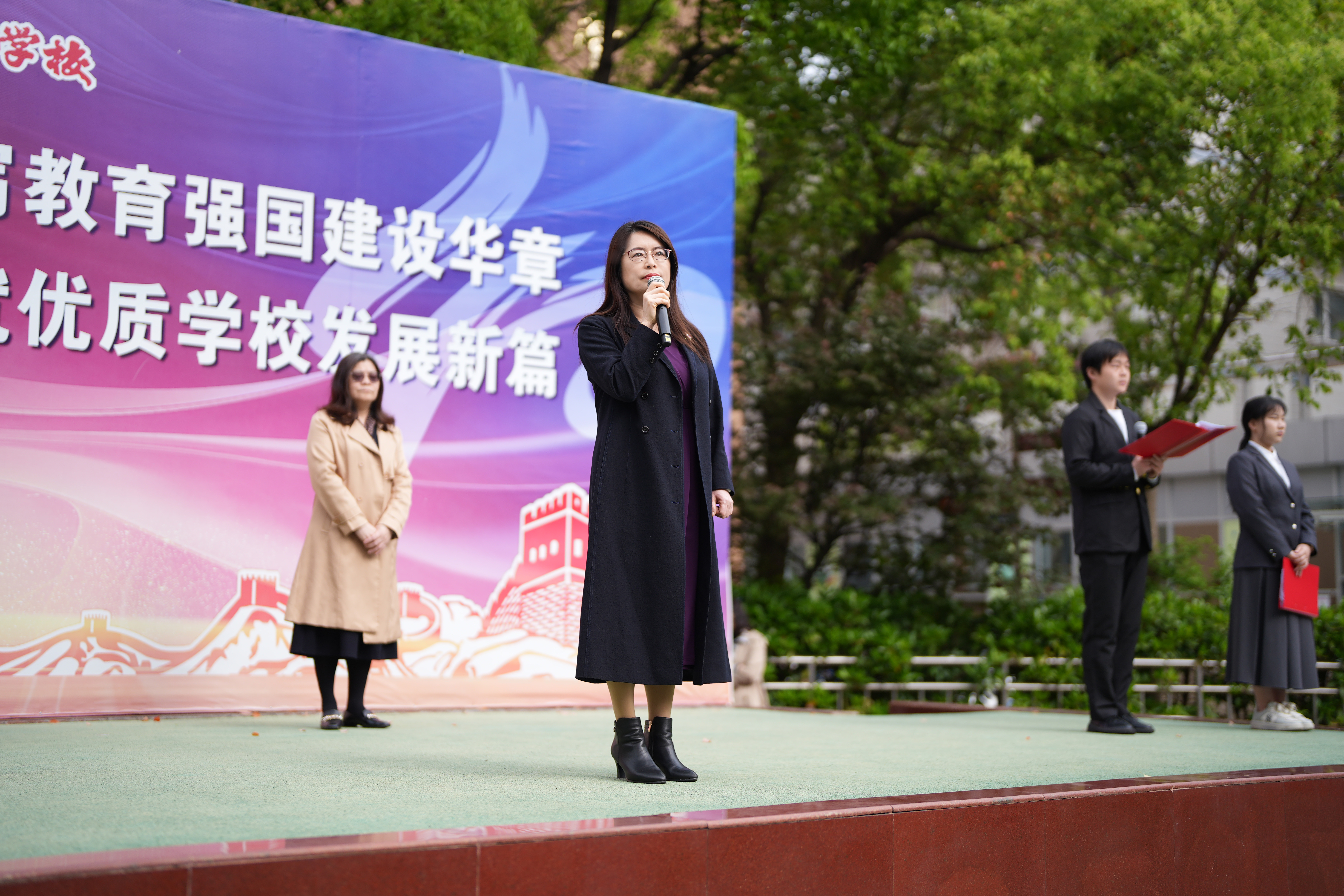 校党委副书记、校长滕琴发表讲话。滕琴校长主题讲话的题目是“幸福与美,健康成长”,分别围绕“幸福”和“美”与大家一起深入探讨,并引用了《诗经》《礼记》《论语》等中华优秀传统文化中的典故,剖析了幸福和美的含义。“幸乃福之基,福是幸之归”,凝聚着对幸福最深邃的理解。滕校长指出:学校的育人愿景是让每一位经管人成为幸福的缔造者和传承者,唯有多修德、常感恩、肯奋斗,方能以“幸”致“福”。作为职业学校的师生,我们有机会用双手创造价值,用技能服务社会,用劳动赢得尊严,我们是幸福的缔造者;同时,我们还要当好幸福的传承者,传承中华优秀传统文化中“幸”的坚韧与“福”的和谐。在讲话最后,滕校长号召经管校师生涵养感恩之心、坚韧之志和创造之勇,鼓励同学们在“幸”的坚韧中汲取力量,在“福”的和谐中涵养品德,在“美”的熏陶中丰盈心灵,一步步写好属于自己的美丽人生!