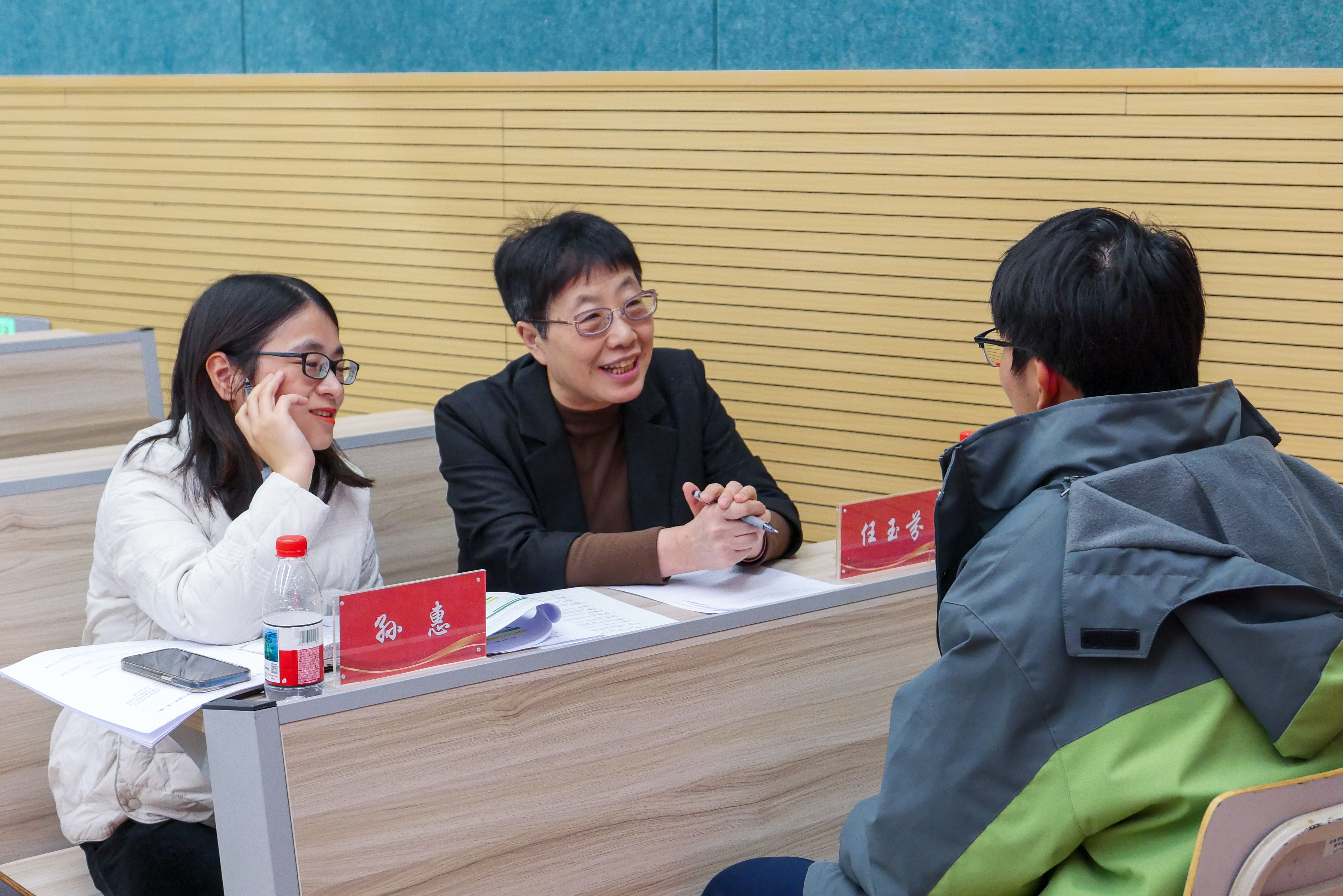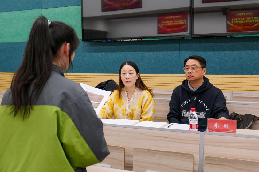 为确保遴选工作的专业性与公正性,课程团队教师前期经过多轮集体学习、反复研讨,精心制定了更为全面、科学的遴选方案。遴选现场,朱刚、任玉芬、张文萍三位校外专家与学校课程团队教师共同组成评审小组,从个人综合素养展示、艺术作品审美解读能力、临场应变与沟通表达能力等多个核心维度,对参与遴选的学生进行全面考察与细致评估。