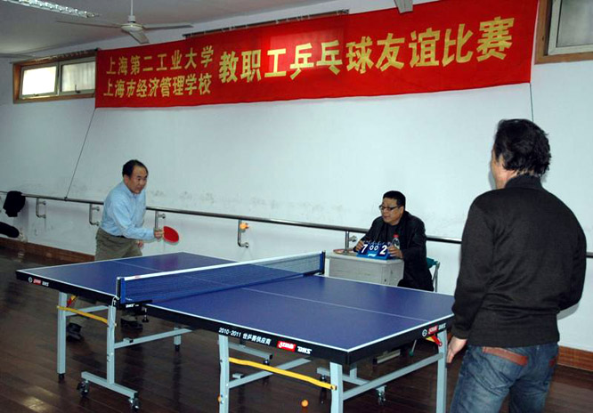 为了深入贯彻实施《全民健身计划纲要》,展现我校教工健康向上的精神风貌,提高教工的身体素质,搭建教工张扬活力、释放激情的舞台,推动教工健身活动的深入开展,加强校际间的沟通和交流。学校工会借教工乒乓社团成立之机,邀请上海第二工业大学领导在工作之余与我校教工乒乓社团进行了一场友谊比赛。