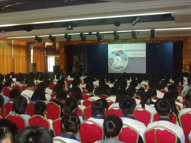 2010年5月22日下午,上海世博会票务工作人员(第二批)培训活动在我校大礼堂顺利开班。 此次由世博票务中心主持的培训活动,培训内容包括世博园区介绍、世博票务销售介绍、售票注意事项及票务流程等。 包括南湖职校、商业学校、物质学校、杨浦职校和经管校在内的近300名中职校师生参加培训活动。