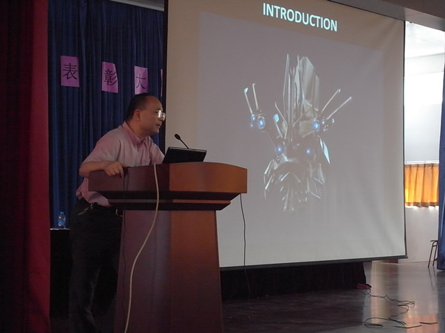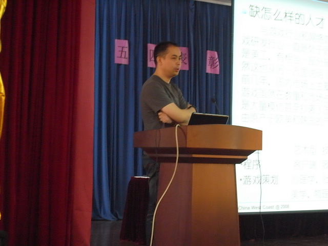 2010年6月2日 星期三,我们数码艺术系利用下午拓展课的时间很荣幸地邀请到了苏州西岸科技有限公司的总裁林大维先生与艺术总监倪娜女士来校为学生介绍目前动漫游戏产业的定义、现状和市场前景。