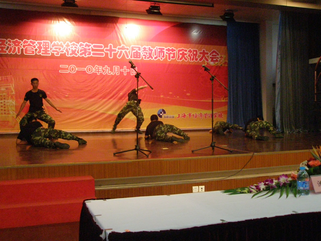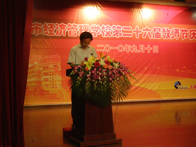 2010年9月10日,我校在大礼堂隆重召开了第二十六届教师节庆祝大会,沈汉达校长、沈晓峰书记、翁昊年副校长和沈林副校长出席了会议,全体教职工和都江堰、云南学生参加了大会。