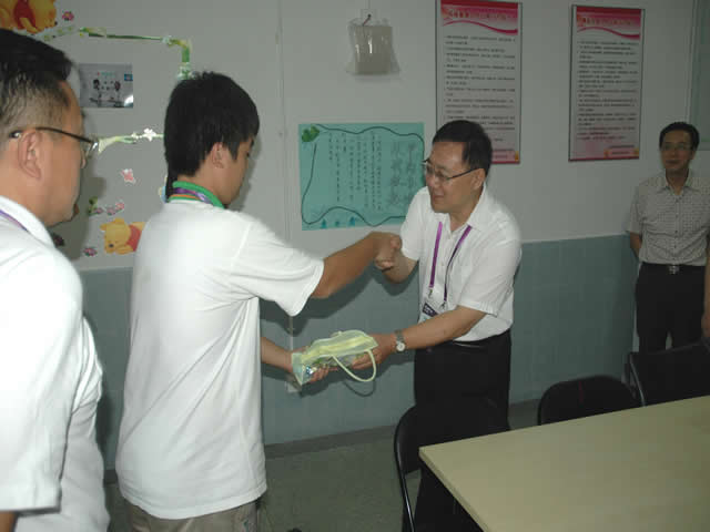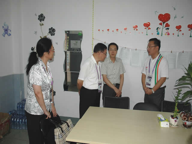 上海市教委李骏修副主任、职成教处王向群处长、世博售票中心赵蕾主任亲切慰问上海市经济管理学校世博现场售票的全体师生。9月8日上午,李主任专程来到半淞园路3号票房,看望正在那里忙碌的售票师生,看到师生们昂扬的精神面貌,统一的着装和整洁的工作窗口,仔细了解每位学生的售票情况,当得知我校朱懿龄同学以当日销售84040元的最高记录,他露出满意的笑容,并勉励师生要“继续努力,不辱使命,全心投入,坚守到底,出色完成世博神圣而光荣的艰巨任务。
