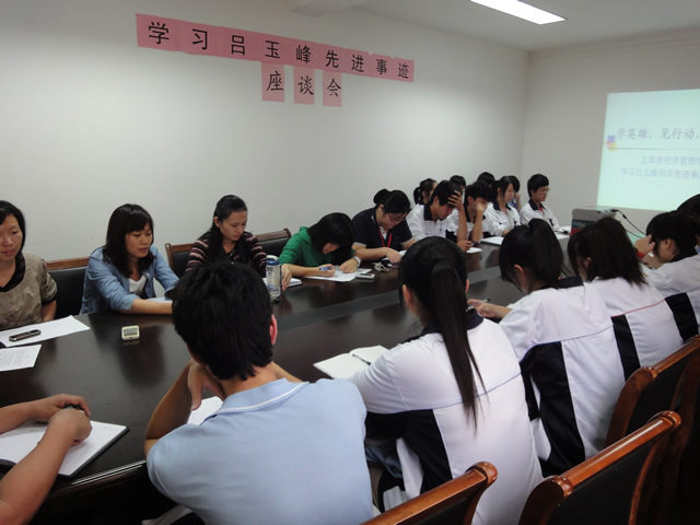 座谈会上师生们围绕吕玉峰同学的事迹展开热烈讨论。学生会主席谭晓栋说:“学习榜样人物不是必须做出轰轰烈烈的大事,而是要在自己的位置上做好平日生活中的点点滴滴,小到捡起一张废纸、扭紧一个水龙头,都是每一个中专学生应当做到的”;姚梦华、朱耀庭等同学认为吕玉峰同学的英雄事迹代表了我们经管学子的精神风貌,作为一名经管人,应该把这种正义感和责任感贯穿到平时的学习生活之中;朱辰仪、陈睿卿等同学从踏实做人、自我保护、奉献社会、社会责任感等方面发表了自己的观点和看法。