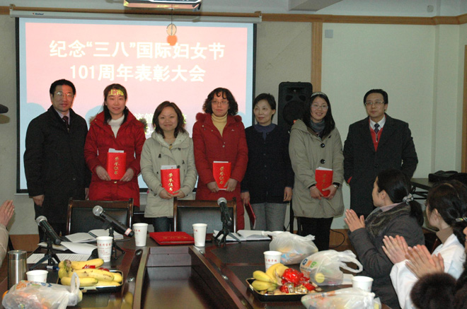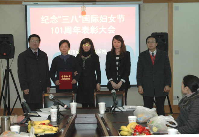 2011年3月3日下午,学校各个部门的三十余位女教工代表和校长沈汉达教授、党总支书记兼校工会主席沈晓峰等校领导一起,在校工会之家欢聚一堂,共同举行纪念“三八”国际妇女节101周年暨表彰大会。