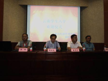 仪式中,上一届毕业生、去年从广南来沪的、现就职于上海松下半导体有限公司的戴文科同学作为老生代表发言,他用自己的亲身经历对学弟学妹们讲述了成才之路,为新一届云南同学指明了前行的方向。新生代表梁大芬同学也表达了全体云南学生的共同心声。