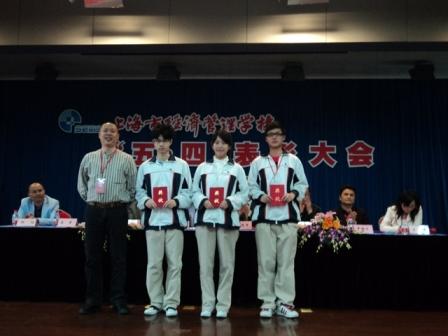 表彰大会在庄重的国歌声中掀开帷幕。会上,学生处周勤伟主任宣读了各先进集体、先进个人表彰决定,由校领导和中层干部向市、区先进集体和先进个人颁奖。学生会主席戴立同学和经管系团总支书记徐娅老师分别代表全体学生和教师发言。