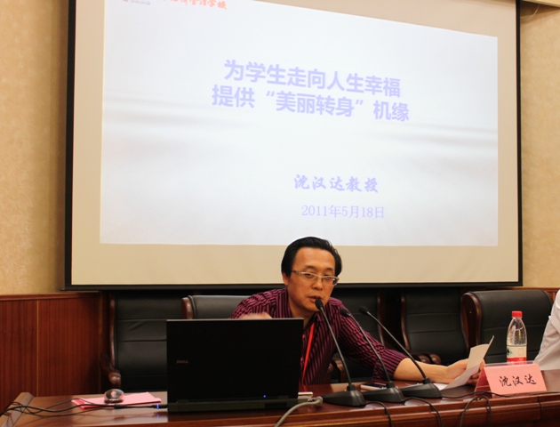 沈汉达校长首先代表学校对远道而来的教育界领导和同行表示热烈欢迎,随即详细介绍了近年来我校良好的总体发展态势,分析了当前中职教育尤其是上海市中职系统的发展和趋势,简要说明了我校“文化立校、专家治校、师生办校”的总体思路,充分展示了“美丽转身”的育人理念和丰硕成果,深刻阐述了学校“博文雅人,转识成智” 八字办学精华的丰富内涵。