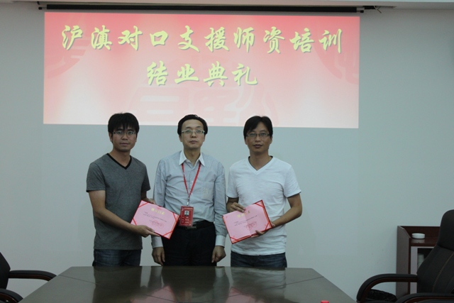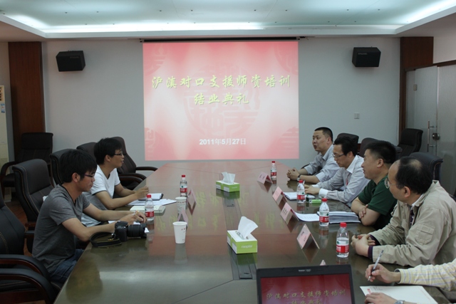5月27日下午,在教苑四楼会议室隆重举行了沪滇对口支援师资培训结业典礼,标志着我校沪滇对口支援首次开展师资培训项目顺利完成。沈汉达校长、翁昊年副校长、邵阳主任、秦晋主任、梁冠宇副主任参加了结业典礼,翁昊年副校长主持。