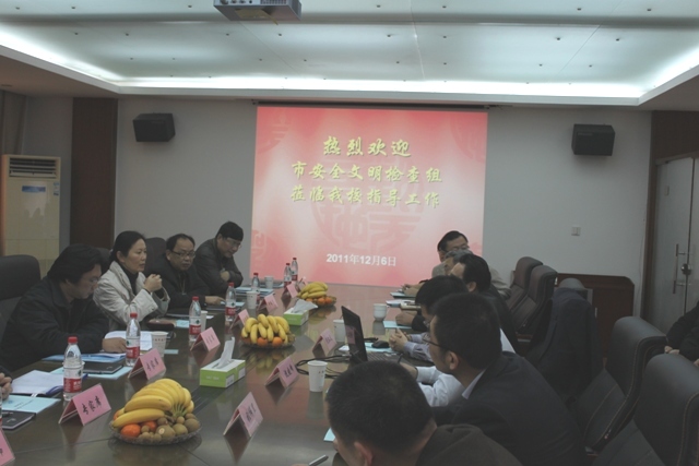 2011年12月6日上午,我校迎来了上海市安全文明校园创建检查验收,全校师生以饱满的精神面貌迎接了检查。沈汉达校长、沈晓峰书记、沈林副校长、张伟罡校长助理携各职能部门代表接待了市安全文明校园检查组。汇报会上,沈汉达校长作了题为《安全文明和谐校园是学生走向人生幸福 实现“美丽转身”最必需最有效保障》的报告,对我校安全文明校园创建工作的思路、计划、过程及结果做了详细汇报。检查组专家听取汇报、审阅材料和实地检查后,评价我校在安全文明校园创建中规范有序,重视过程管理,社校合作成效显著,并能因地制宜做好安全工作,对我校安全文明校园创建表示肯定。