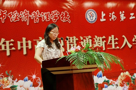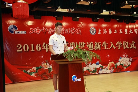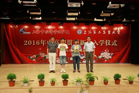 2016年8月7日下午,我校隆重举行2016级计算机应用技术专业和计算机网络技术专业中高职贯通新生入学仪式。上海第二工业大学教务处徐海萍处长,上海第二工业大学高等职业技术(国际)学院党委黄慧春书记,上海第二工业大学招生就业处经晓峰处长,上海第二工业大学学生处常小勇处长,上海市经济管理学校校长沈汉达教授,上海市经济管理学校党总支杨顺莉书记,上海市经济管理学校翁昊年副校长,上海市经济管理学校沈林副校长,上海市经济管理学校张伟罡副校长,上海市经济管理学校学生工作处周勤伟主任,上海市经济管理学校教务处张劲国主任等出席了仪式。