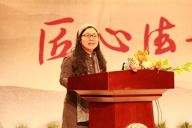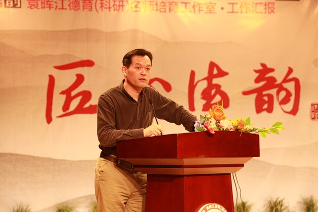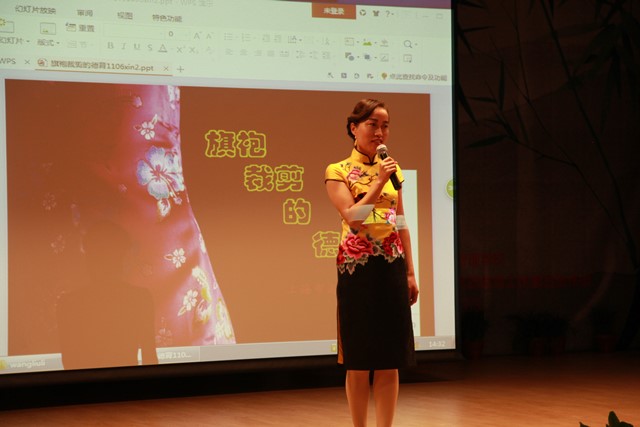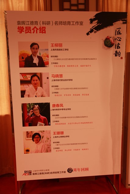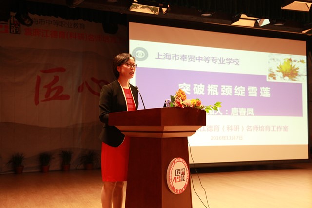 紧接着,四位学员依次汇报一年来的成长故事。上海公用事业学校王珊珊老师以《导师领我走进》为题,讲述了自己在袁老师的指导下,进行课题研究,现已成功上路。奉贤中专唐春凤老师常年负责学校新疆管理工作,她以“突破瓶颈绽雪莲”为题,讲述如何使新疆维族学生与汉族学生情感交融,随后新疆内职班的学生为大家演唱了传统沪剧《燕燕做媒》。现代职校马晓慧老师以“实践活动绘三圈”为题,讲述如何开展学生实践活动,并逐步形成课堂内圈、活动中圈、项目外圈的架构体系。上海市高级技工学校王柳丽以《“旗袍裁剪出的德育》为题,以旗袍礼仪社团为载体,在工科学校培养学生的工匠精神和人文情怀,并附上华雅礼仪社团学生进行旗袍文化展示节目。袁晖江老师作为工作室导师,在感谢各方对工作室关心之后,对一年的工作进行了高度概括,表示在未来一年的工作中,将进行《幸福职业人》项目的研究和实施。