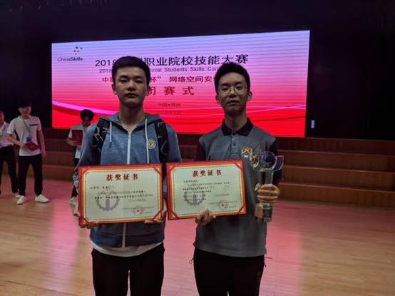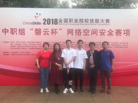 5月12日,在常州举办的2018年全国职业院校技能大赛中职组网络空间安全赛项中,我校王亚飞,李兵老师指导的马立、左志超两位同学组队,与来自全国的100多支队伍的选手进行比拼,经过3小时的激烈角逐,成功夺得金牌。王亚飞、李兵两位老师荣获“优秀指导教师奖”。