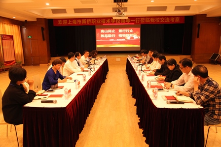 5月9日上午,上海市新桥职业学校刘建飞校长一行来校考察交流。上午九点半,考察团一行在沈汉达校长的引领下,参观了我校教学互动体验中心、人文素养体验馆等教学环境。上午十点,交流会在我校大礼堂举行,党委副书记(主持工作)王国平首先致欢迎词,他对刘建飞校长一行的到来表示热烈欢迎,并希望两校以此为契机,进一步增进友谊,交流经验,优势互补,共谋发展。校长沈汉达教授作了题为《高山仰止·景行行止·敦品励行·格物致知》的专题汇报,详细介绍了我校近年来在教育教学方面的有效做法及成效。刘建飞校长一行高度肯定了我校的办学成绩,希望两校在更多方面开展交流与合作。随后,与会人员就相关工作开展了交流。