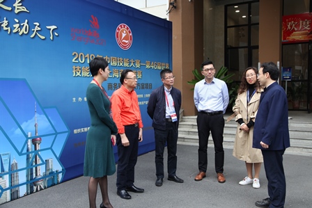 我校高度重视赛事工作。校长、上海市特级校长沈汉达教授、张伟罡常务副校长到赛场热情接待到校的领队和裁判,及时与项目工作协调小组保持信息沟通,关切选手表现。上海市人力资源和社会保障局上海市职业技能鉴定中心书记、副主任崔立强等领导莅临比赛现场关心指导赛事工作。
