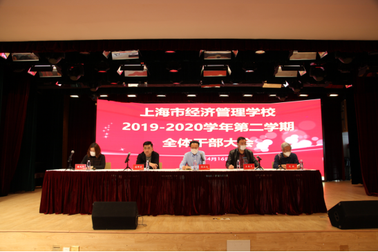 4月16日下午,普陀区2020 年春季学期开学准备工作部署会议暨开学准备工作培训会议召开,我校在大礼堂设分会场,通过视频连线参加会议。我校校长、上海市特级校长沈汉达教授,党委书记王国平,常务副校长张伟罡,党委副书记、纪委书记沈林和副校长钱旭华出席了会议,全体中层干部和安全专员、校医等人员参加。