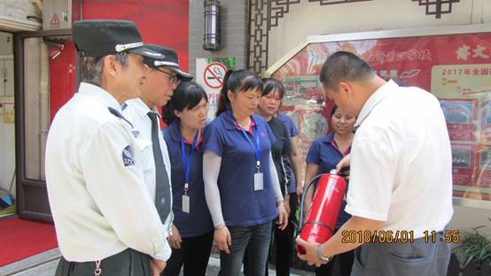 的基本原则,向外聘人员介绍了楼道内消防设施的使用(消火栓、灭火器等),普及了应急通道及疏散演练路线。