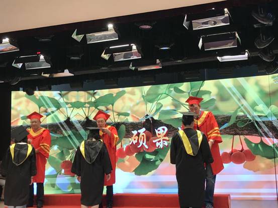 在雄壮的国歌声中,毕业典礼拉开了序幕,我校2018届毕业生身着毕业礼服,与班主任话别、与学校挥手再见。毕业生代表为班主任老师送上鲜花,全体学生以宏亮的声音、饱满的热情向在场的所有老师道一声“老师您辛苦了,老师我们爱您”!随后,学生家长和学生代表发言。校长沈汉达教授为毕业生代表颁发了毕业证书,并与校党委副书记(主持工作)王国平、副校长沈林共同为2018届全体毕业生“拨穗”。“拨穗”代表着稻穗或者麦穗成熟,象征着毕业生已学有所成,可以展翅高飞。