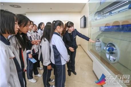 有了对大自然的浓烈好奇之心,同学们随即迫不及待地跟着讲解员开启了科技馆参观之旅。展馆外形犹如一条跃动的鱼,设序厅、资源与环境、科技与应用、人文与历史等四个常规展厅及一个临时展厅,共有展项51个。讲解员重点介绍了长江河口自然、生态、科技与历史,世界各主要河口的相关知识,让同学们受益匪浅。