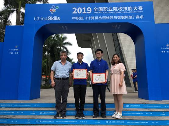 近日,在湖北宜昌举办的2019年全国职业院校技能大赛中职组网络搭建与应用比赛项目中,由范云、朱艳梅两位老师指导的冯义和杨晟逸同学荣获全国职业院校技能大赛计算机检测维修和数据恢复项目全国二等奖,为上海代表队获得2枚银牌。