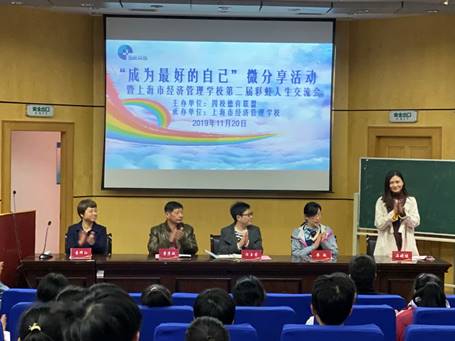 11月20日下午3点,我校在二楼多功能厅举行了四校德育联盟“成为最好的自己”微分享会暨上海市经济管理学校第二届彩虹人生交流会。来自四校德育联盟发起单位的老师以及部分普教的老师参加了本次活动。上海市浦东外事服务学校黄欣然同学、上海市信息技术学校谯陟航同学、上海市材料工程学校吴鹏同学和我校张天竞等4位优秀学生进行精彩分享。