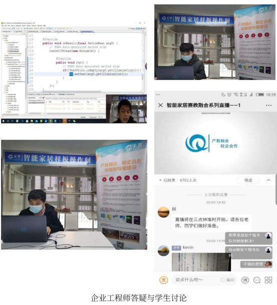 学校和上海企想信息技术有限公司共同开发《智能家居》课程。先由在校教师对学生在网上进行理论教授,再由企业资深工程师针对实践操作进行指导,为课程增色不少。特别是学生直接与企业工程师开展互动讨论,同学们既能感受到一线员工的工作氛围,同时研讨的积极性也更为高涨。