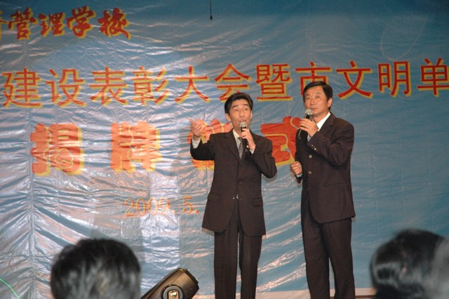 上海市歌剧团的著名演员朱洁静、王佳俊和著名笑星陈国庆、石兆荣参加了表彰大会并分别表演了喜庆的节目。武警上海总队某部进行了气势恢弘的武术表演,我校师生也演出了独唱、独奏等丰富多彩的节目。庆典在热烈的掌声中圆满结束。