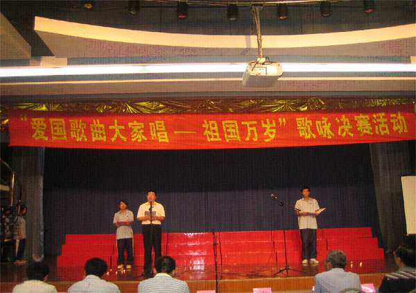 连日来,我校处处洋溢着节日的喜庆,全体师生在欢乐中期待着新中国成立60周年这个盛大节日的到来。9月30日,我校庆祝新中国成立60周年“歌唱祖国”歌咏比赛决赛在大礼堂隆重举行。