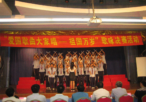 各班均把组织开展好这次歌咏比赛活动作为宣传展示良好形象和奋发向上精神风貌的一次机遇,精心编排节目,组建强大阵容,充分展示了我校近年来的良好风貌,为庆祝新中国成立60周年营造了良好的文化氛围。
