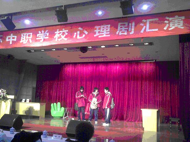 各校带来的心理剧角度各异,均反映了现在中职生所遇到的各种心理困惑,我校参加表演的心理剧《可以让我独自成长吗?》由袁晖江指导、08007班朱懿龄编写、09011班周世昌、08005班王辰昊、郁灵、朱懿龄表演,讲述的是如何进行亲子沟通的问题,演出人员真情投入,表演流畅自如,充分展示了我校学生的风采,受到了专家、领导的好评。