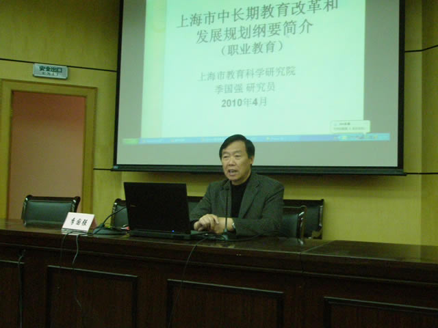 2010年4月9日,我校邀请原市教科院党委书记季国强研究员来校,为全校教职工作专题报告,详细解读了新近出台的《上海市中长期教育改革和发展规划纲要》。