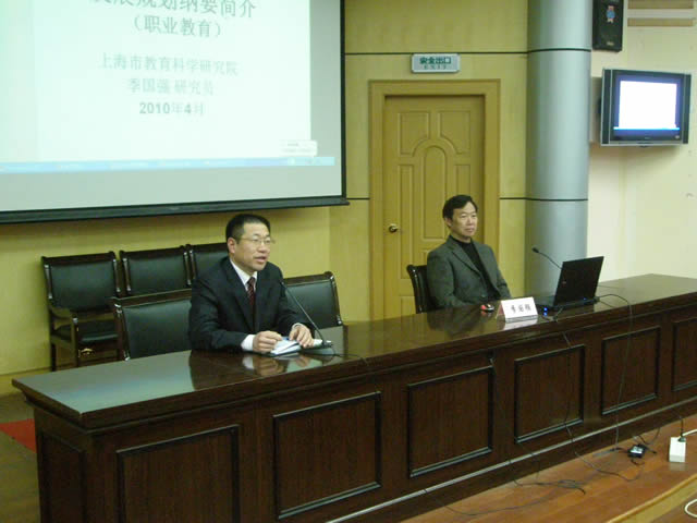 季研究员以上海《纲要》参与制定者的身份,通过深入浅出的分析、解读了《纲要》。他重点分析、解读了纲要产生的背景以及与职业教育相关的部分,精辟独到的分析,引起了在场的每位教工的共鸣。