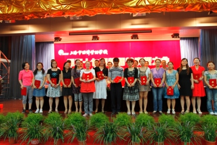 校领导们向老师们颁发了上海市中等职业学校第二届德育课程论文奖、上海市中专教育研究会论文评审奖、上海市学生阳光体育大联赛篮球中专技校组团体奖、校2010年“文明组室”奖、校2011年学术年会教师教学设计大赛奖、校2011年学术年会教师论文奖、多媒体课件评比奖等奖项,共计51人次获奖。